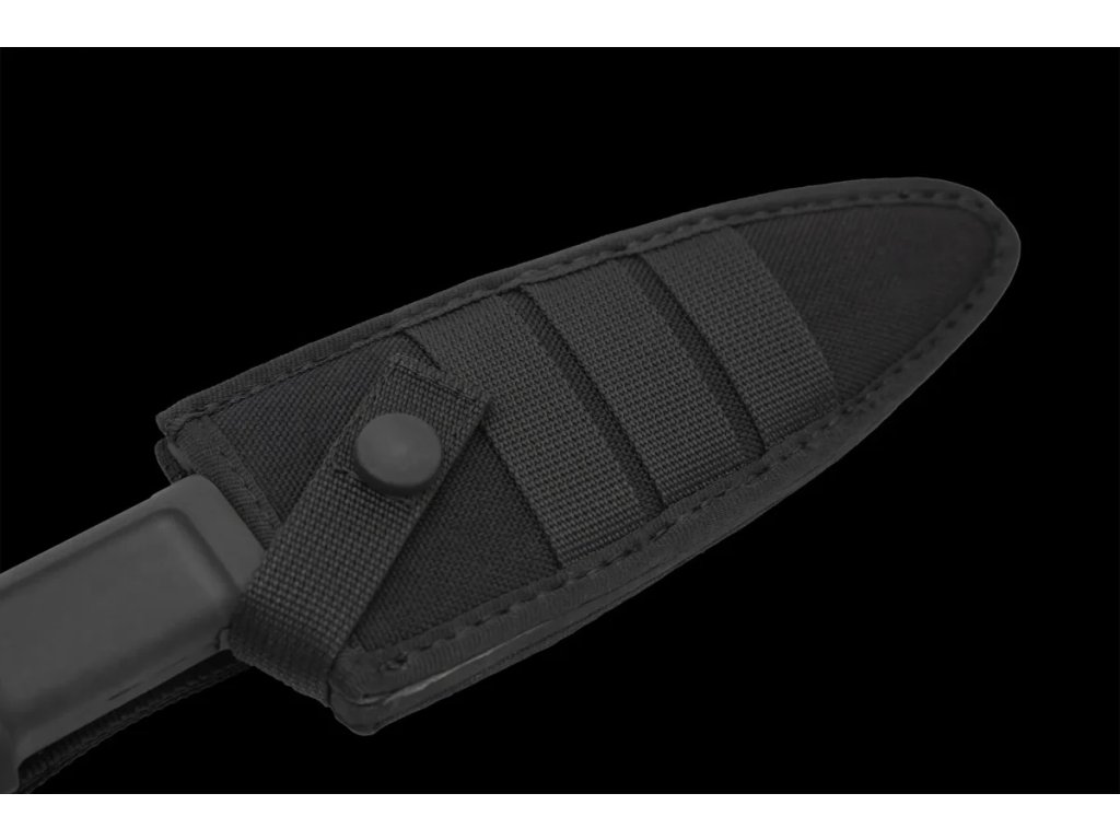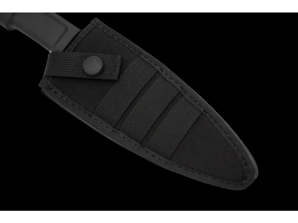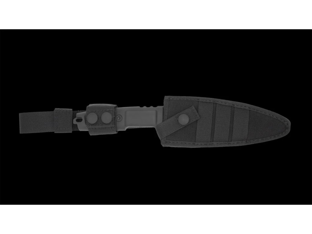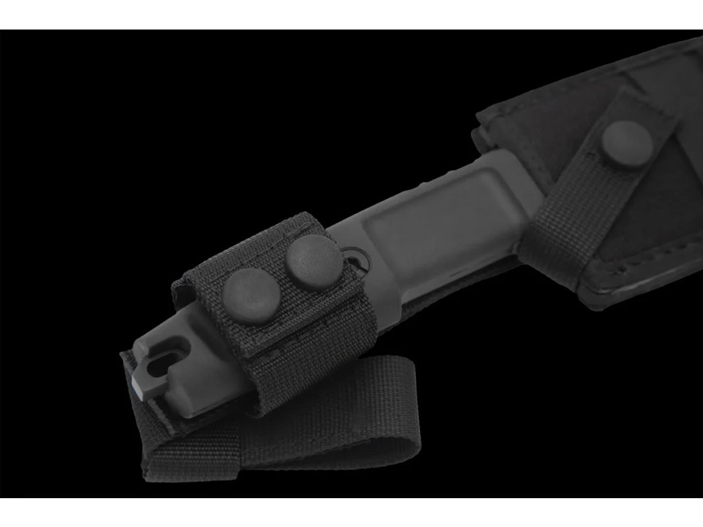 A késhez tartozik egy fekete MOLLE rendszerű tok, amely jobb- és balkezes használatra is állítható.