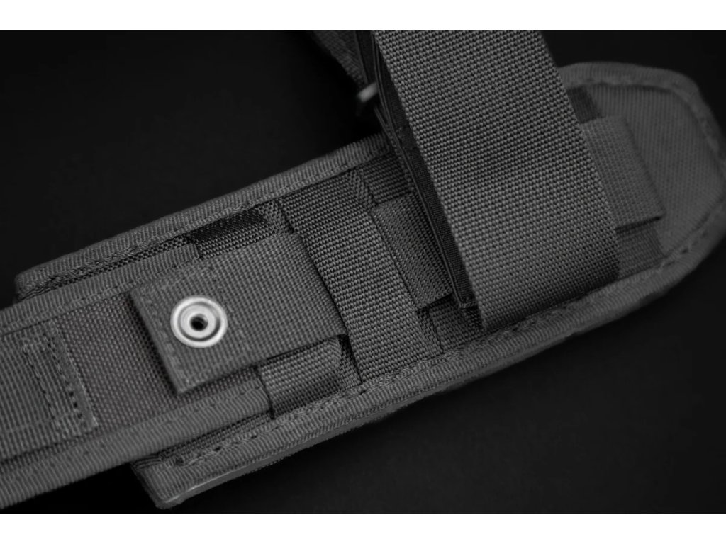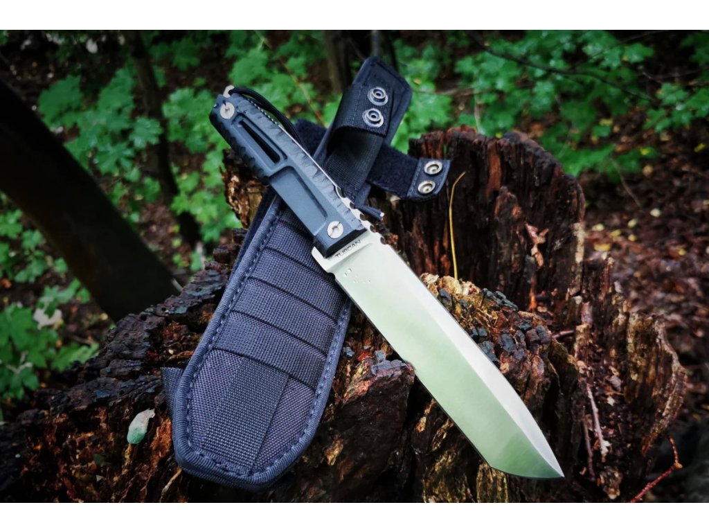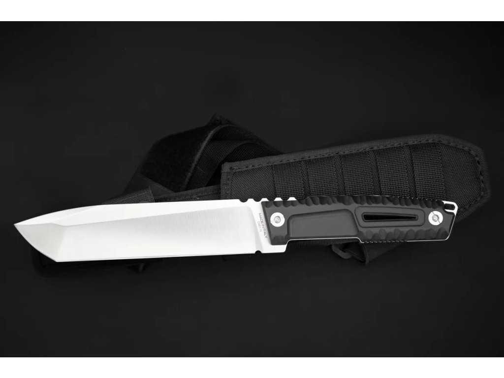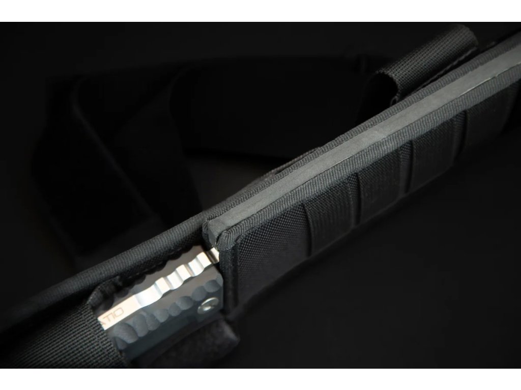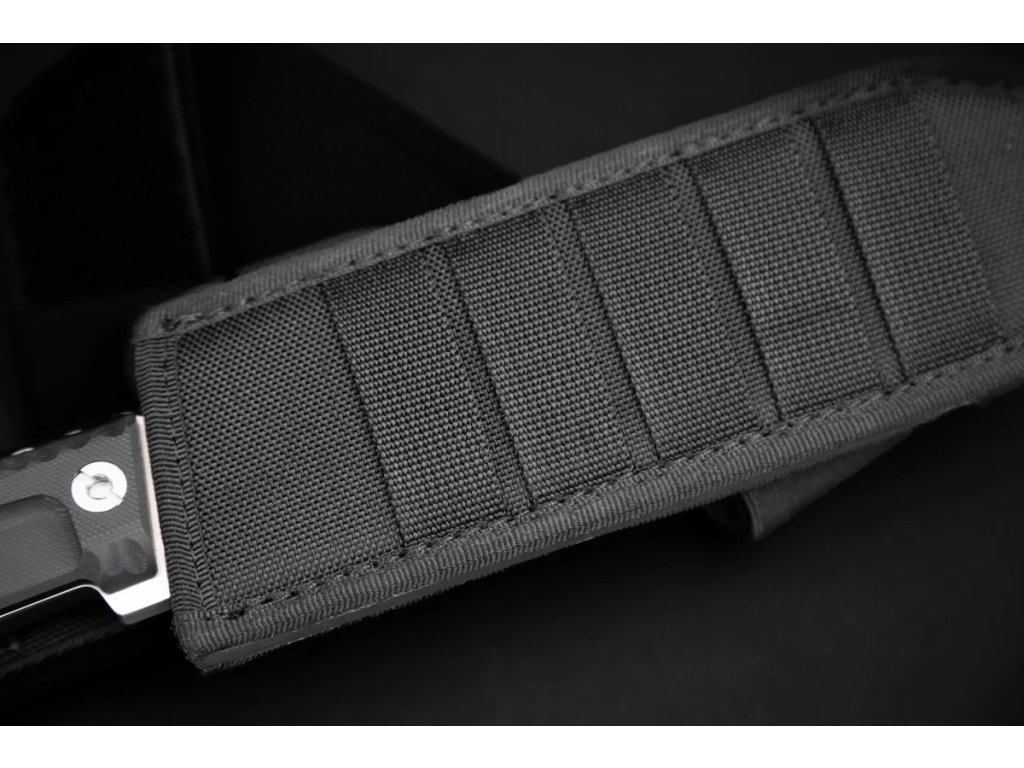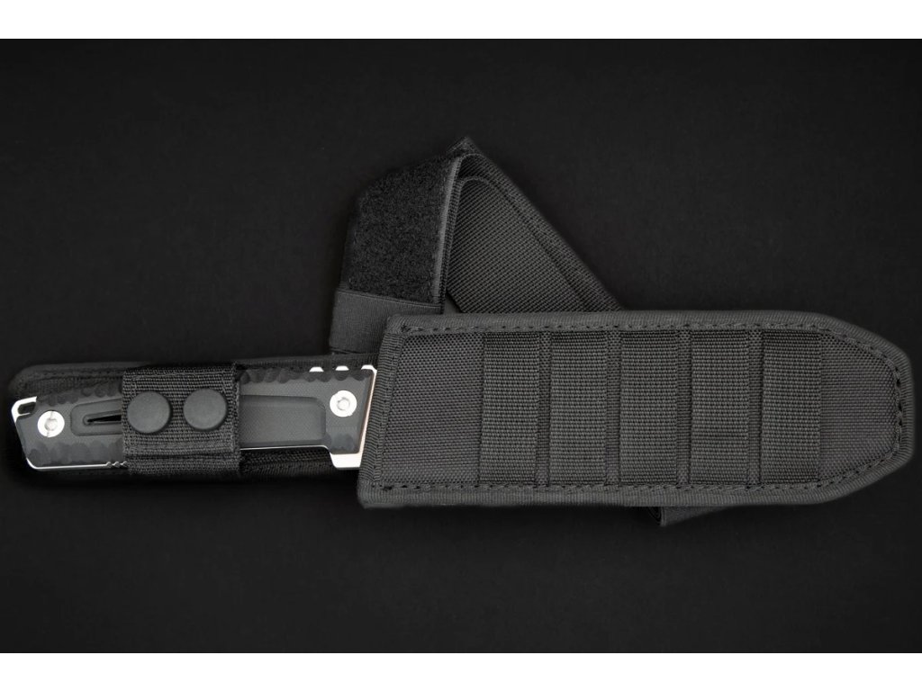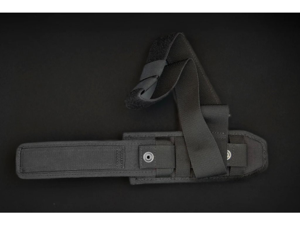 A késhez fekete Molle rendszerű tok tartozik, amely alkalmas taktikai mellényeken és öveken való hordásra.