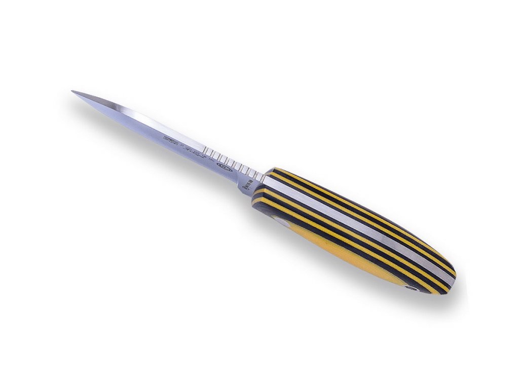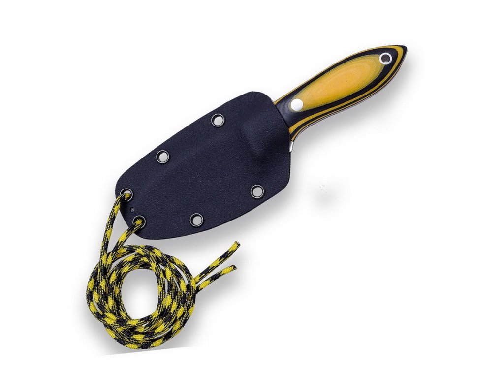 A Joker Avispa egy kompakt kés természetbe és mindennapi használatra, nyak körüli viselésre is alkalmas. A drop point penge Sandvik 14C28N rozsdamentes acélból készült, 8 cm hosszú és matt felületű. A fekete és sárga micartából készült markolat ergonomikus kialakítású, és nagyon jól illeszkedik a kézbe. A kés kydex tokkal és 1,3 m hosszú 550 paracorddal érkezik. A kés szikravetővel való használatra alkalmas. A kés tervét J. Sabater írta alá.