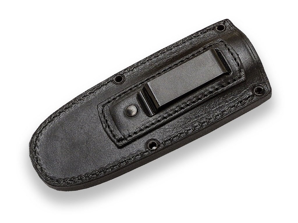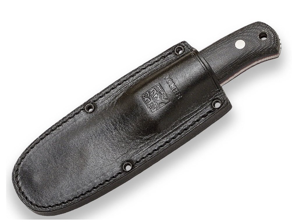A fekete micarta markolat nagyon kényelmes fogást biztosít, amit különösen hosszabb vadonban töltött idő során értékelhetsz. A csomag tartalmaz egy fekete bőr tokot, melyen fém övcsipesz található az övre akasztáshoz, valamint egy paracord zsinórt.