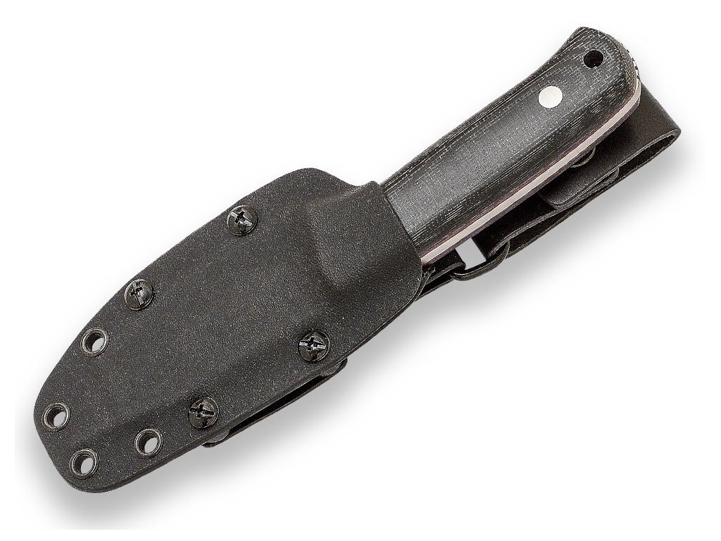 A fekete micarta markolat nagyon kényelmes fogást biztosít, amit különösen hosszabb vadonban töltött idő során értékelhetsz. A csomag tartalmaz egy kydex tokot, amely az övre akasztható, valamint egy paracord zsinórt.