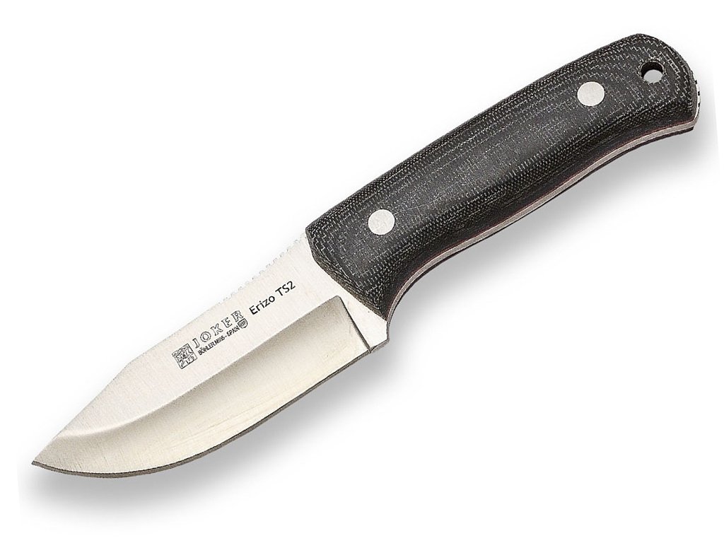 A Joker Erizo TS2 CM142-K könnyen hordozható erdei és természetjáró kés méretei miatt. Full tang kialakítású, egy darabból kovácsolt acélból készült. A 9,5 cm hosszú penge Böhler N695 rozsdamentes acélból készült, szatén felületkezeléssel.