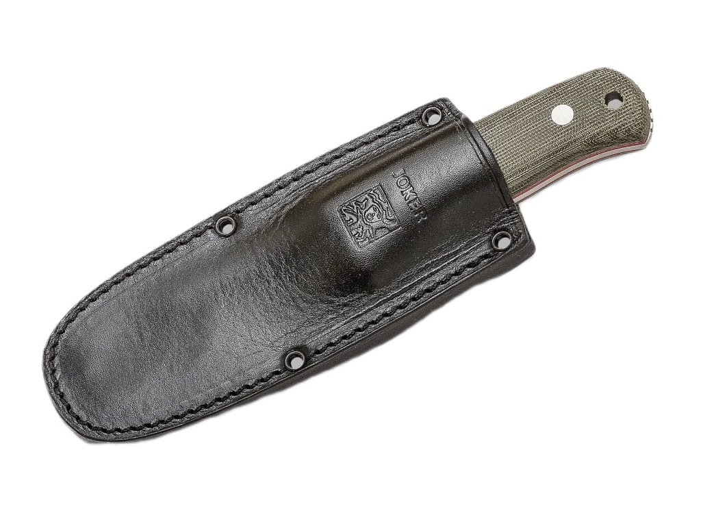 A Joker Erizo TS2 CV142 erdei és természetjáró kés kompakt méreteinek köszönhetően könnyen hordozható. Full tang kialakítású (egy darabból készült acél), 9,5 cm hosszú pengével, amely rozsdamentes Böhler N695 acélból készült, szatén felülettel. A zöld micarta markolat kényelmes fogást biztosít, amit különösen hosszabb használat során, a vadonban töltött órák alatt fog értékelni. A csomag tartalmaz egy fekete bőrtokot fém övcsipesszel és egy paracord zsinórt is.
