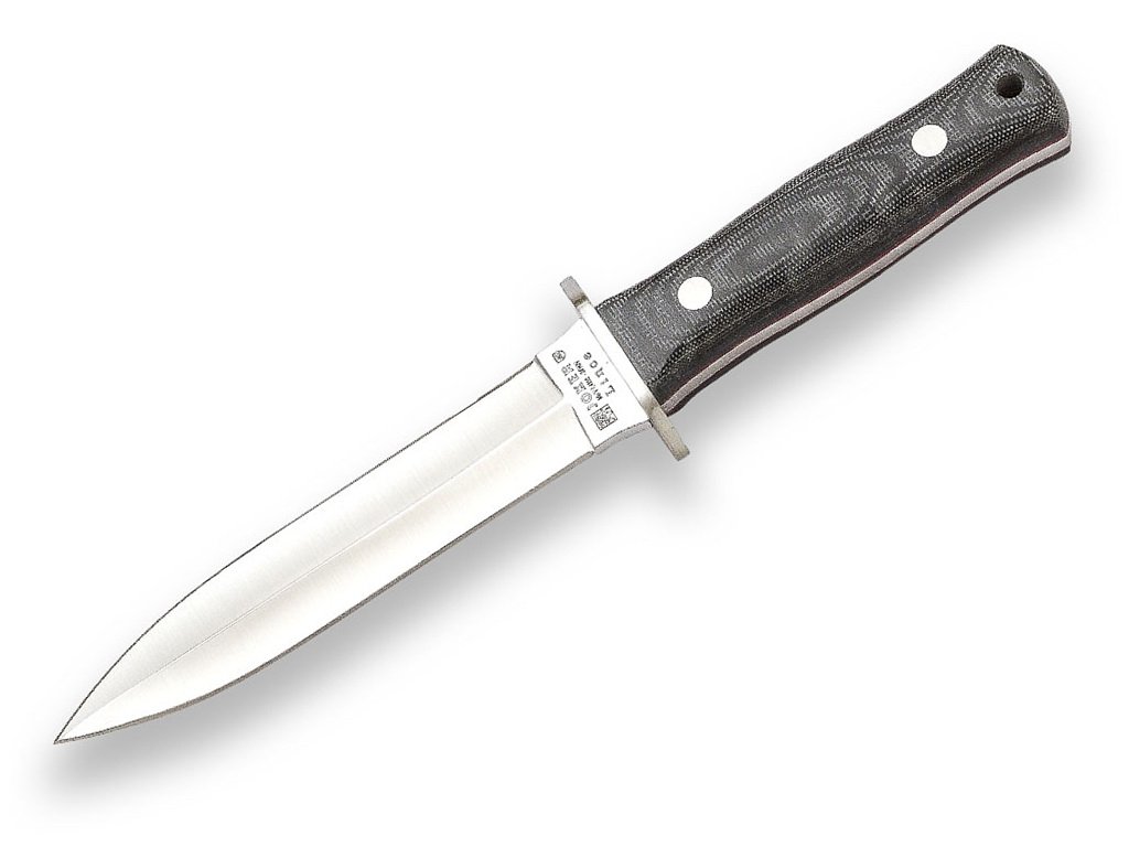 A Joker Lince CM43 közepes méretű erdei kés tőrkés pengével és kétélű éllel. A penge hossza 15 cm, rozsdamentes X50CrMoV15 (1.4116) acélból készült, szatén felületi kezeléssel. A fekete micarta markolat kényelmes fogást biztosít, amit különösen értékelni fogsz a természetben eltöltött hosszú órák során. A csomag tartalmaz egy masszív fekete bőr tokot, mely biztonságosan rögzíti a kést csatok segítségével.