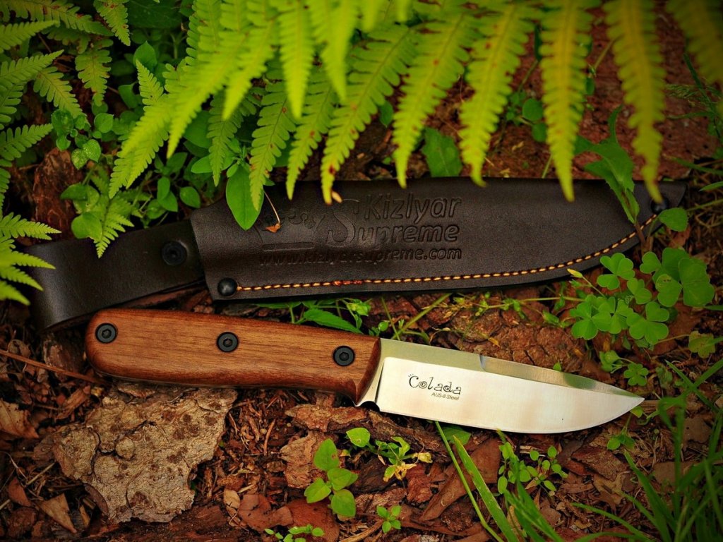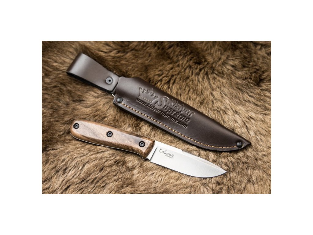 Kisebb, univerzális kés kültéri használatra. Full tang szerkezete biztosítja, hogy tartós és megbízhatót. AUS-8, acél penge, HRC 57-59 keménységgel, stonewash felületkezeléssel. Diófa gyökérből készült a markolata. A késhez bőrtok tartozik.