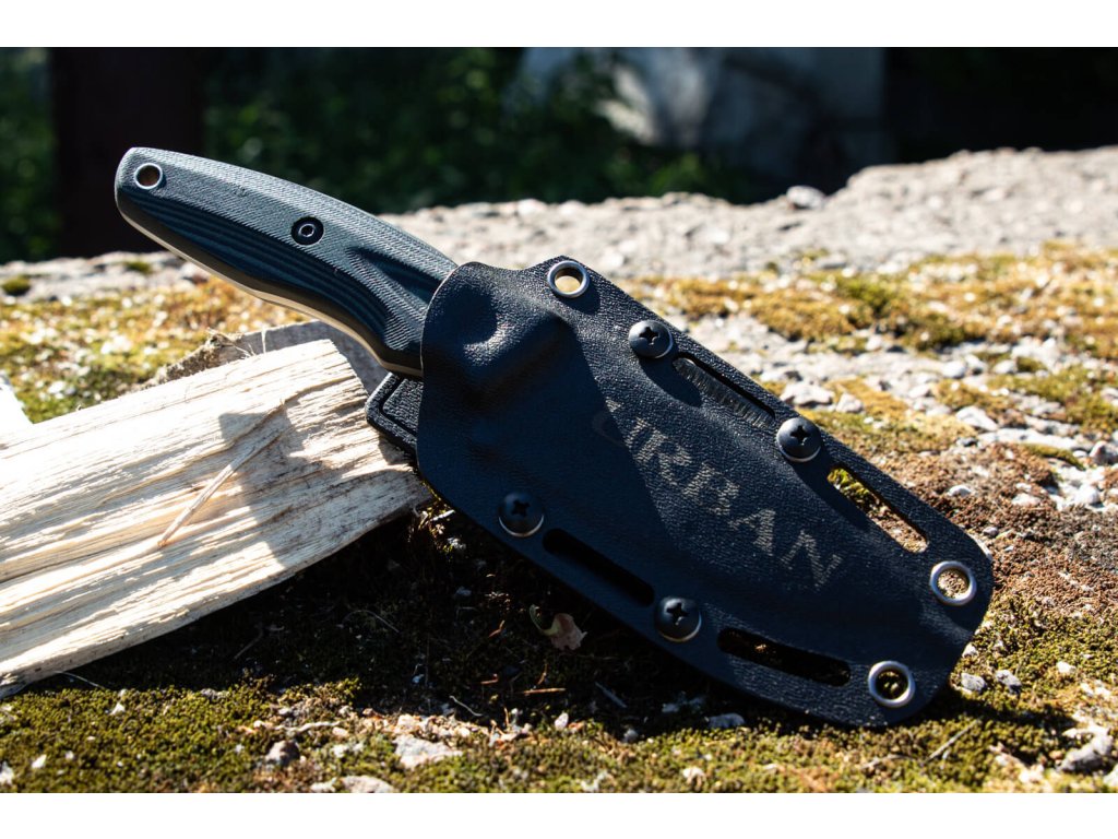 Kisebb, univerzális outdoor kés. Kompakt méretének köszönhetően alkalmas EDC késnek is – mindennapi használatra. A full tang kialakítás biztosítja a kés szilárdságát és megbízhatóságát. A penge D2 acélból készült, keménysége 60-62 HRC, tac wash felületi kezeléssel. A penge drop point formájú és sík élű. A markolat fekete-zöld G10-ből készült – modern kompozit anyag, nagyon tartós és kellemes tapintású. A kés kydex tokban kerül forgalomba.