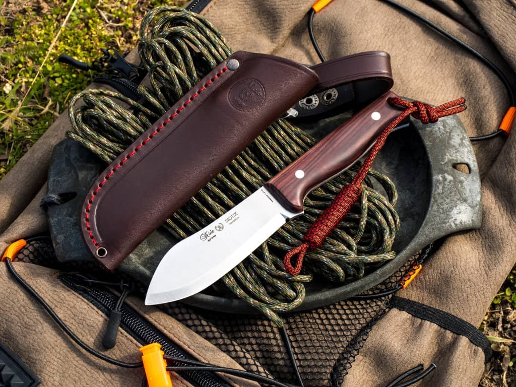 A Nieto Sioux egy kiváló minőségű, masszív, közepes méretű kés, amely alkalmas a természetbe és a vadászathoz. A full tang konstrukció garantálja annak szilárdságát és megbízhatóságát. A nessmuck alakú penge 11,3 cm hosszú, skandináv élezésű és német 1.4116-os rozsdamentes acélból készült. Bíborszív (ibolyafa) fa markolat. Erős varrással ellátott marhabőr tok, amely lehetővé teszi az öv magas és mély lógását. A kés kompatibilis szikravetővel.