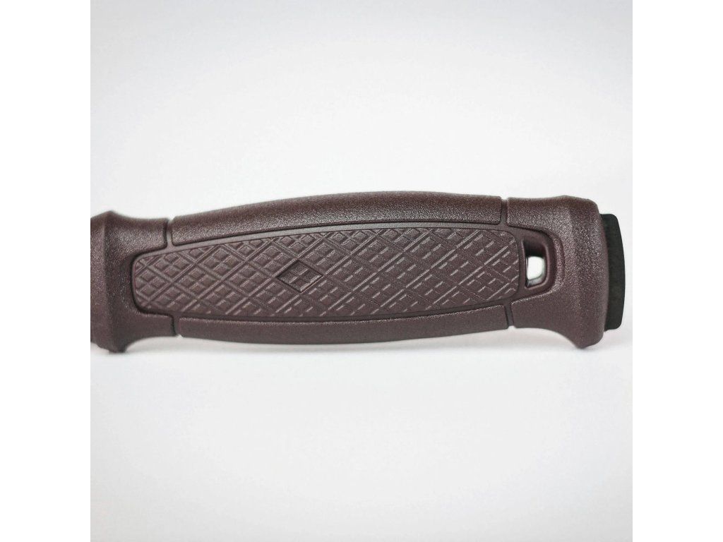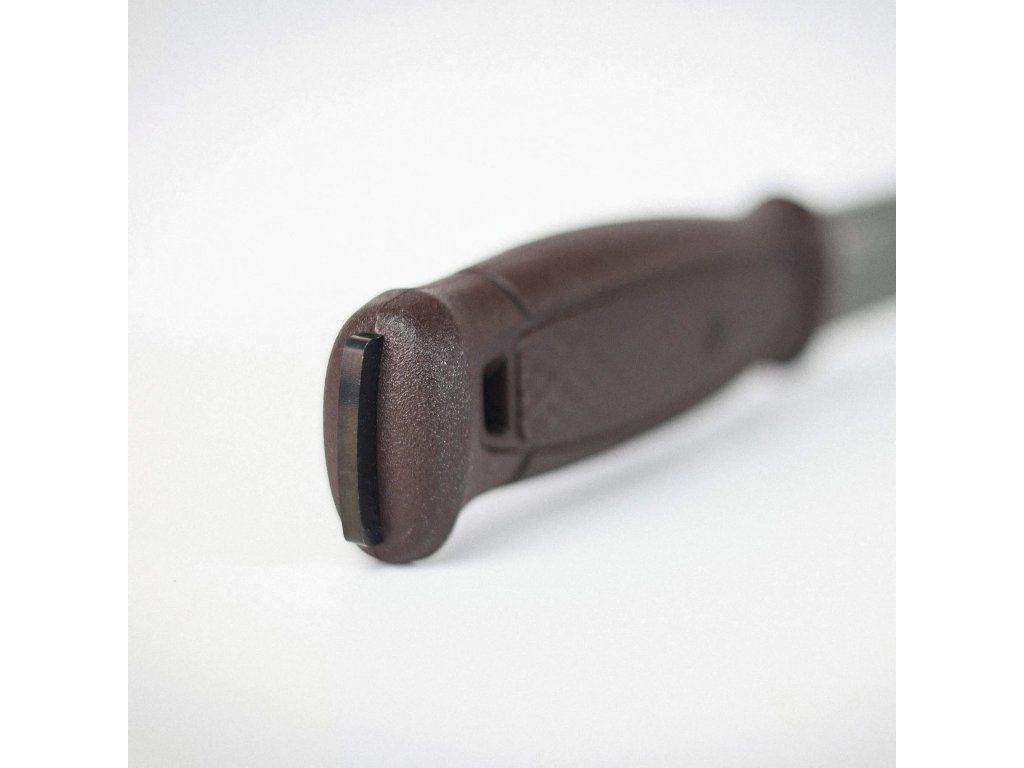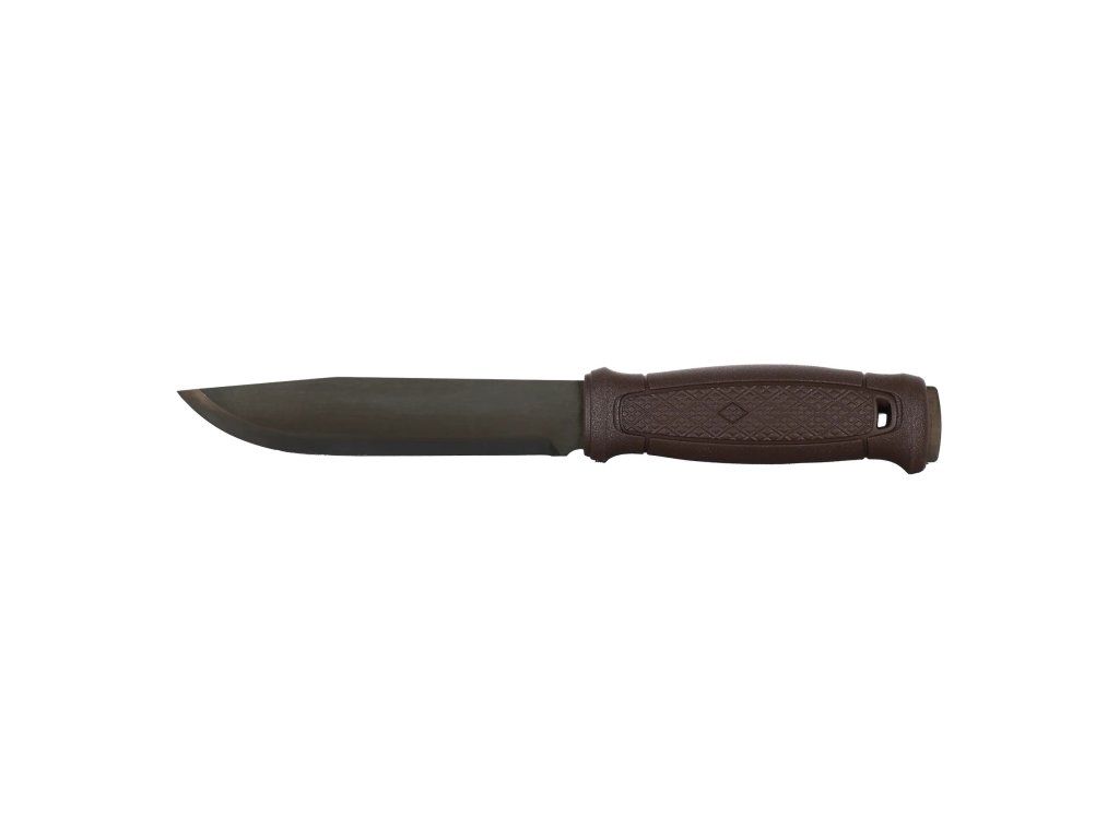 A robusztus Morakniv Garberg Grand BlackBlade (C) erdei és természetjáró kés 14,2 cm hosszú, C100S szénacél pengével rendelkezik, amely fekete DLC (diamond-like carbon) bevonatot kapott. Ez a bevonat segít megelőzni a rozsdásodást és csökkenti a penge csillogását. Az ergonomikus, sötétbarna polimer markolat csúszásmentes mintázattal és ujjvédővel van ellátva.