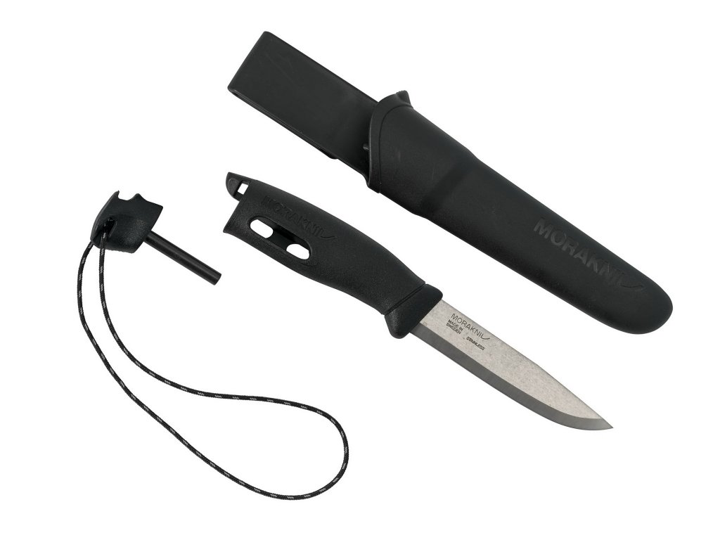 A Mora Companion Spark egy univerzális kés a kés nyelébe épített szikravetővel. Öngyújtó vagy gyufa nélkül is tüzet rakhatsz szikravetővel. A szikravető 3000°C hőmérsékleten szikrázik, mellyel könnyen meggyújthat papírt, száraz füvet, nyírfa kérget vagy fűrészport. Sandvik 12C27 rozsdamentes acél penge, keménység 57-58 HRC. Műanyag markolat csúszásgátló gumi bevonattal. A fekete műanyag tok könnyen rögzíthető az övre, anélkül, hogy az övet ki kellene kapcsolni. A Morakniv kések Svédországban készülnek.