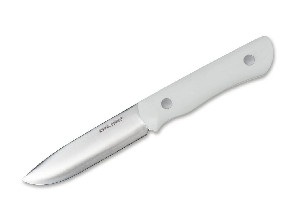 A Real Steel Bushcraft III egy univerzális kés fix pengével és közepes méretű, full tang. Ennek köszönhetően a mindennapi munkában és a természetben is jól használható. Penge 10,5 cm hosszú, szénacél D2, konvex élezéssel. G10 markolat fehér színben. Bőr tok felakasztási lehetőséggel.