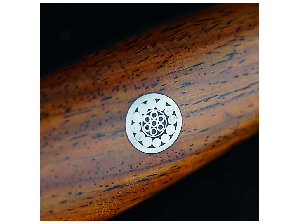 A kés markolata rózsafából készült, amelyet egy kis mozaikos díszítés ékesít. A markolat ergonomikus formájának köszönhetően a kés fogása mindig rendkívül kényelmes lesz az Ön számára. Jellegzetes alakja az ázsiai típusú késekre emlékeztethet, ami nemcsak esztétikus, hanem funkcionális is.