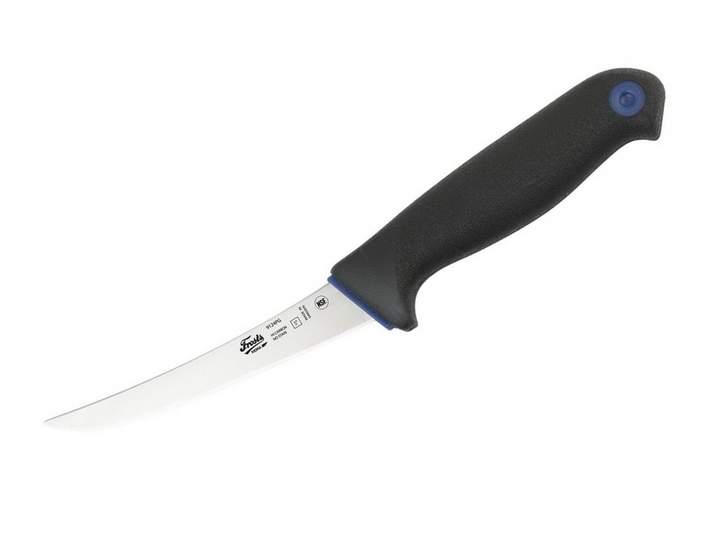 Professzionális hentes csontozó kés keskeny és ívelt pengével, húsfeldolgozáshoz. A 12,4 cm hosszú penge 58 HRC keménységű svéd rozsdamentes acélból készült, amely a speciális hőkezelésnek köszönhetően (-80⁰C-on) tökéletesen megtartja élességét és könnyen élezhető. A penge rugalmas, ami megkönnyíti a nehezen elérhető helyek elérését a csontok körül húsfeldolgozás során. A ProGrip típusú ergonomikus, neoprénnel borított markolat kellemes, de mindenekelőtt biztonságos fogást biztosít. A kést a húsfeldolgozó iparban történő kicsontozásra és húsfeldolgozásra szánják. Emiatt a gyártó odafigyel a kés és anyagai lehető legnagyobb minőségére, a kés megjelenése és kialakítása ilyenkor nem tökéletes. A kés Svédországban készült.