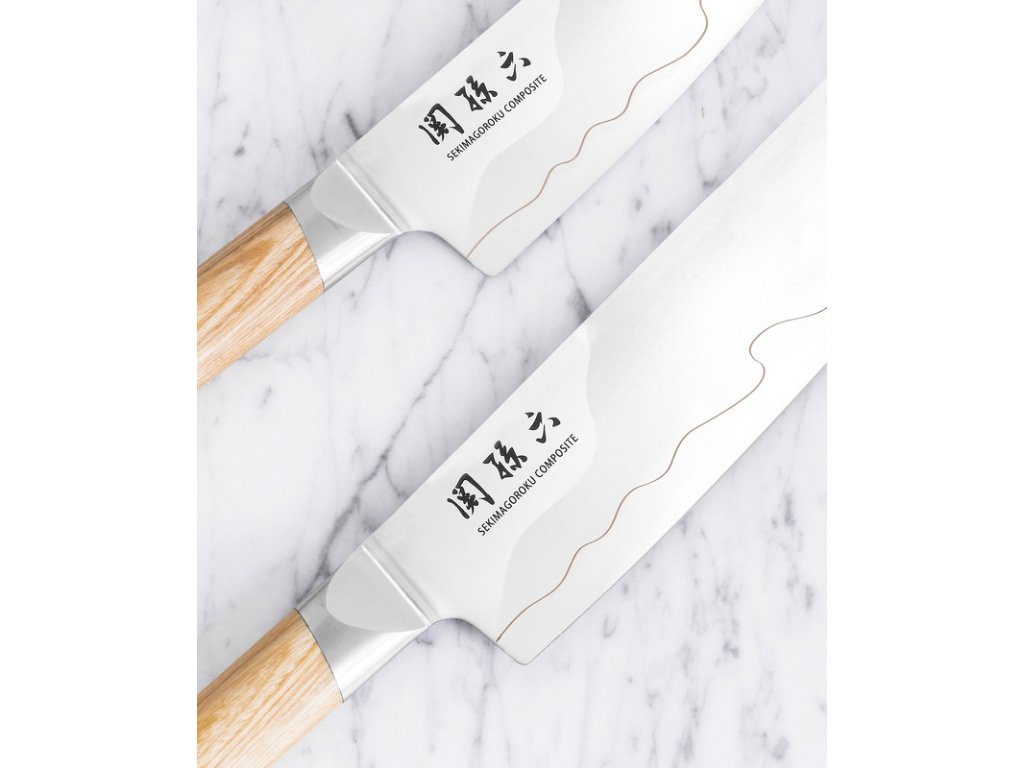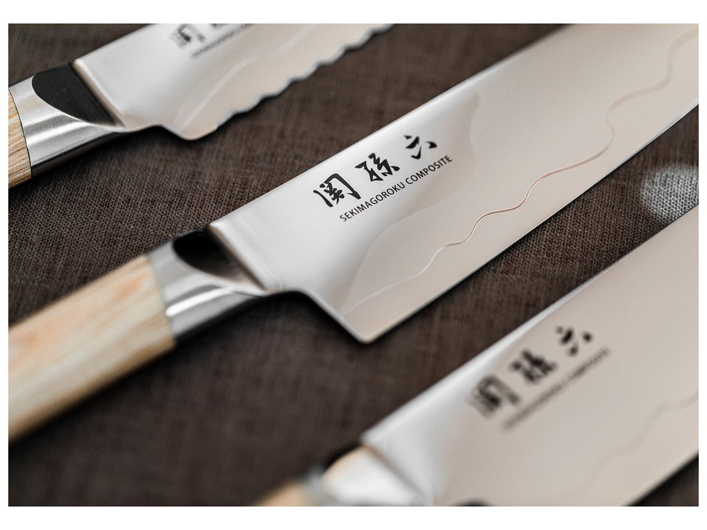 A 9 cm pengehosszúságú KAI japán konyhai zöldségkés a Seki Magoroku Composite sorozatból az egyszerűséget és a dinamikus tulajdonságokat ötvözi. A kés így kialakított megjelenése lenyűgöz minden dizájnos darabra vágyó szakácsot. A könnyű fa markolattal kombinálva a sorozat rendkívül kényelmesnek és stílusosnak tűnik. A kompozit penge akár két különböző típusú acélból áll , amelyeket rézötvözettel lamináltak és ragasztottak össze. A Seki Magoroku kompozit késsorozat különleges elismerést kapott a 2013-as Red Dot Design Awardson.