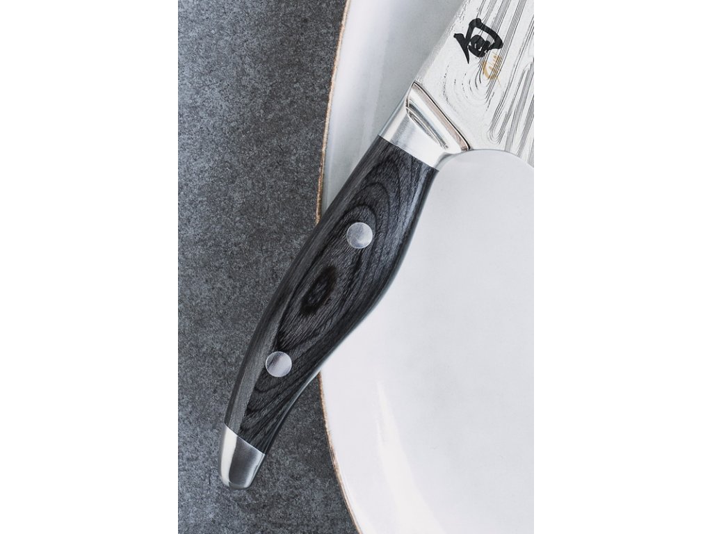 KAI japán konyhai zöldségkés 9 cm pengehosszúsággal a Shun Nagare Shun mesterkések felső sorozatából. A különlegesen felhasznált anyagok, a kifinomult formatervezés és a technikailag fejlett gyártási folyamatok teszik ezt a kést a luxus konyhai eszközök csúcsává. A Shun Nagare késsorozat külön elismerésben részesült a 2017-es German Design Awardson. A késeket elsősorban professzionális használatra szánják , de minden egyes szakács imádni fogja a prémium minőségű késekkel való szeletelést.