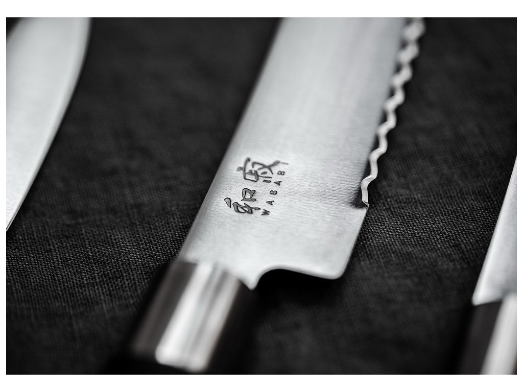 A kések tisztítása: Első használat előtt öblítse le a késeket forró vízben. Minden további használat után győződjön meg róla, hogy a késeket megfelelően, enyhe mosószerrel mossa el, és puha ruhával szárítsa meg. Saját biztonsága érdekében a késeket mindig a testtől távol törölje le. A kések használat utáni azonnali öblítése elengedhetetlen, különösen, ha savas ételekkel dolgozik. A japán kések nem valók a mosogatógépbe. A hosszan tartó élesség megőrzése érdekében mindig csak kézzel mosson.