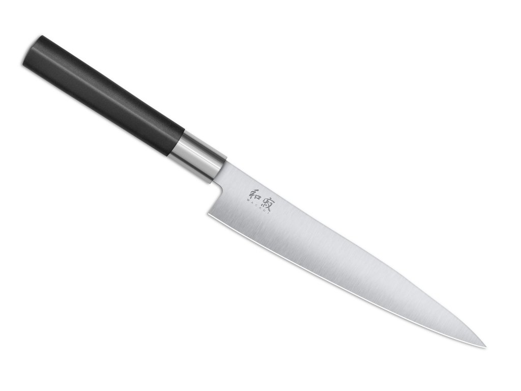 A KAI japán konyhai filézőkés 18 cm pengehosszal a Wasabi Black késsorozatból különösen ideális otthoni használatra. A sorozat minimalista kialakításában nagyon egyszerű a használata, és különösen alkalmas olyan szakácsok számára, akik az ár és a teljesítmény közötti arany középutat keresik .