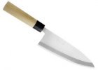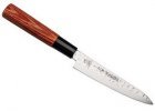 Kis konyhakés zöldségekhez, damaszkuszi acélból, VG-10 acélmaggal. Penge hossza: 10,5 cm, teljes hossz: 24 cm. Nyolcszögletű markolat szénszálból és G10 anyagból.