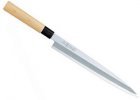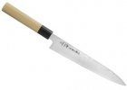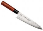 Sakimaru Gyuto típusú konyhakés damaszkuszi acélból, VG-10 acél maggal. A penge hossza: 21,5 cm, teljes hossza: 36 cm. Nyolcszögletű markolat szénszálból és G10 anyagból.