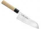Santoku típusú konyhakés damaszkuszi acélból, VG-10 acél maggal. A penge hossza: 18,5 cm, teljes hossza: 33,5 cm. Nyolcszögletű markolat szénszálból és G10 anyagból.