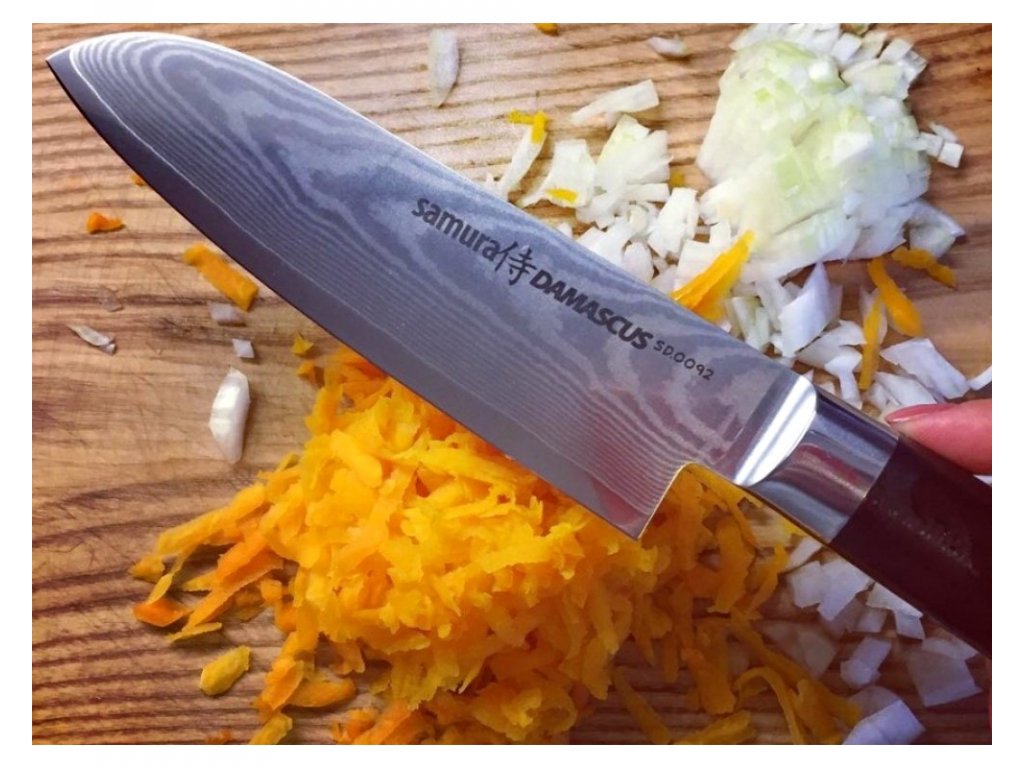A Samura Damascus konyhai kések valódi ékszer a konyhai kések között. Egyesítik a vékony és rendkívül éles japán damaszk acél pengét (67 acélréteg, keménység 61 HRC-ig) és egy szilárd G10 kerek markolatot. Jól kiegyensúlyozottak, kiváló minőségűek és figyelemre méltóak a minimalista dizájnnal. Szép dobozban vannak, tehát ajándékként is alkalmasak.