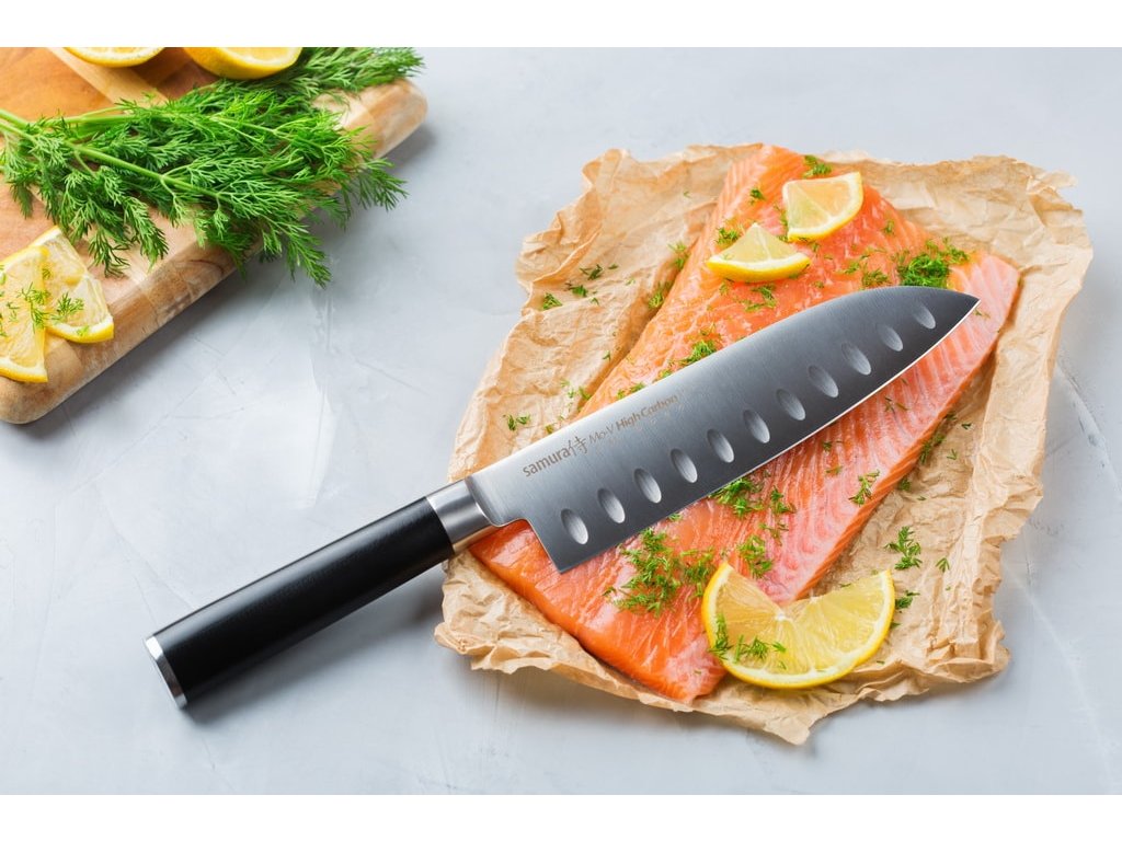 A Samura kések kiváló minőségű japán rozsdamentes acélból készültek, keménységük 58-61 HRC. A gyártó AUS-8, AUS-10, VG-10 acélt, végül damaszk acélt használ. A markolatok első osztályú anyagokból készülnek, például G10, micarta, rózsafa vagy ABS műanyag.