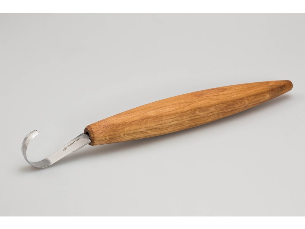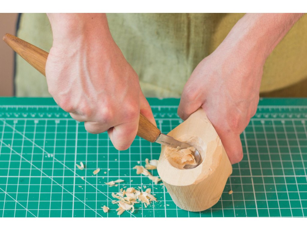 Faragó kés, az úgynevezett kanálfaragó, jobbkezesek számára alkalmas pengével és 20 cm-es nyéllel. Különösen alkalmas mélyebb lyukak faragására. Kifejezetten kanalak, tálak, kuksa és egyéb olyan darabok vágására alkalmas, ahol lyukat kell ásni a fába. 57 - 59 HRC keménységig edzett szénacél penge. A szénacél sokáig éles és könnyen csiszolható, de inkább rozsdásodásra hajlamos (a kést használat után alaposan meg kell tisztítani és szárítani, a pengét is érdemes időnként olajjal áttörölni). Lenolajjal impregnált tölgy késnyél.