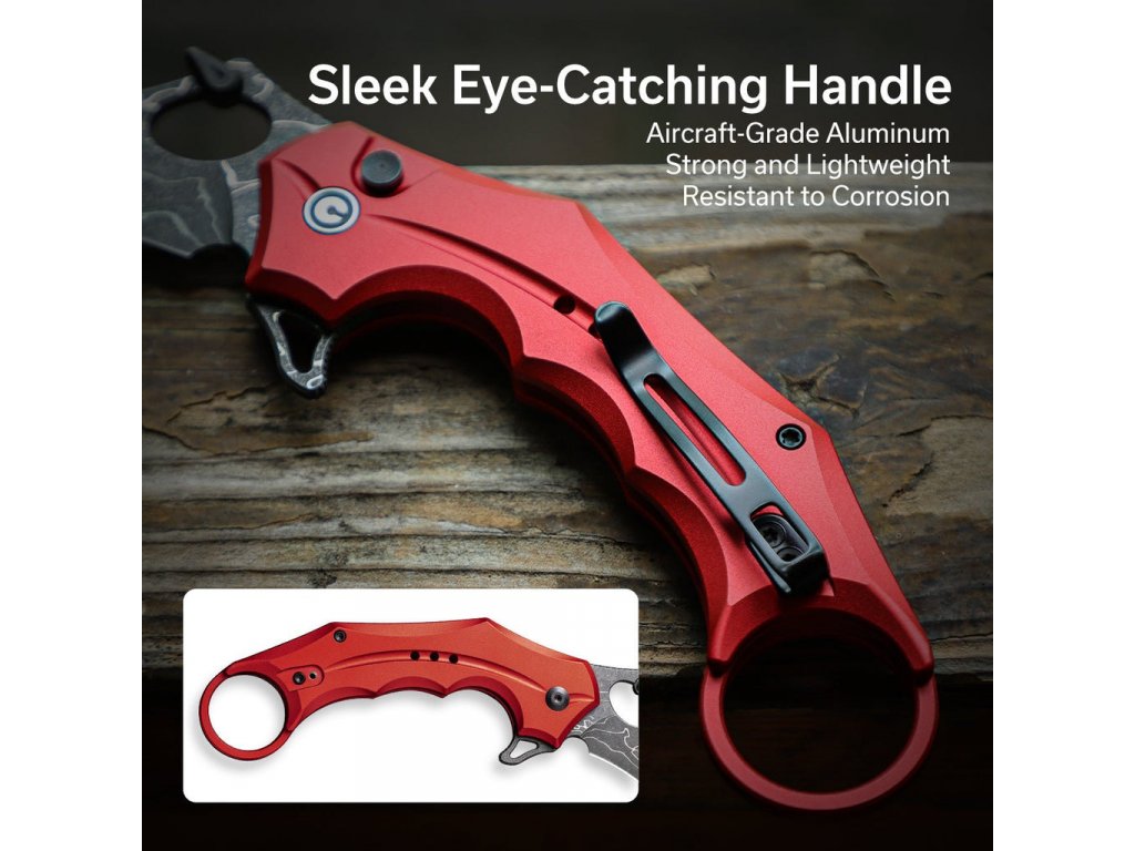 A Civivi Incisor II Damaszkusz egy taktikai célokra használt összecsukható karabélykés. Pengéje damaszkuszi acélból készült, 5,1 cm hosszú, stonewash kivitelben. A kés teljes hossza 17,6 cm nyitott formában, amelyben a kés többféleképpen is hozzáférhető. A kés nyitható flipperrel, gombbal, hüvelykujj nyitással vagy csappal. Nyitott helyzetben gombzárral van rögzítve. A kés mechanikai funkcionalitását kerámia golyóscsapágyak is biztosítják. A markolat alumíniumból készült, feltűnő piros színben. Hossza 12,5 cm. A markolathoz tartozik egy rozsdamentes acél Tip-Up klipsz is a felakasztáshoz, amely megkönnyíti új damaszkuszi segédjének hordozását. Ennek az összecsukható karambitnak a súlya 93 g.