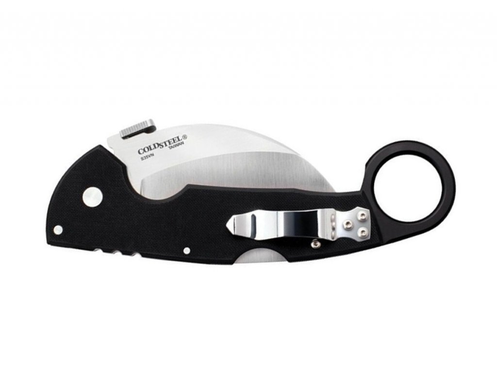 Bemutatjuk az összecsukható karambitok képviselőjét, a Cold Steel Tiger Claw 22C karambitot. A Tiger Claw 22C borotvaéles szaténpengével, amely 8,7 cm hosszú és 3,5 mm vastag, a Tiger Claw 22C megmutatja megbízhatóságát az önvédelemben. Ez a penge prémium minőségű, kiváló minőségű S35VN rozsdamentes acélból készült, ami kivételes szilárdságot, él megtartását és korrózióállóságot biztosít. A kés súlya mindössze 145 g, és úgy tervezték, hogy hihetetlenül könnyű és könnyen manőverezhető legyen. A lenyűgöző, 23 cm-es teljes hosszával a Tiger Claw megfelelő méretet és erőt kínál a különböző vágási feladatok felelősségteljes megoldásához. Átgondoltan kialakított 15,8 cm hosszú fekete G10 markolata biztonságos és kényelmes fogást biztosít a pontos irányításhoz bármilyen taktikai feladat során. Ez a kés megfordítható övcsipesszel rendelkezik. Kényelmes hordozhatóságának köszönhetően mindig kéznél lehet, könnyen rögzítheti zsebéhez, övéhez vagy felszereléséhez. A kés Tri-ad zárral rendelkezik, amely a klasszikus backlock továbbfejlesztett változata.