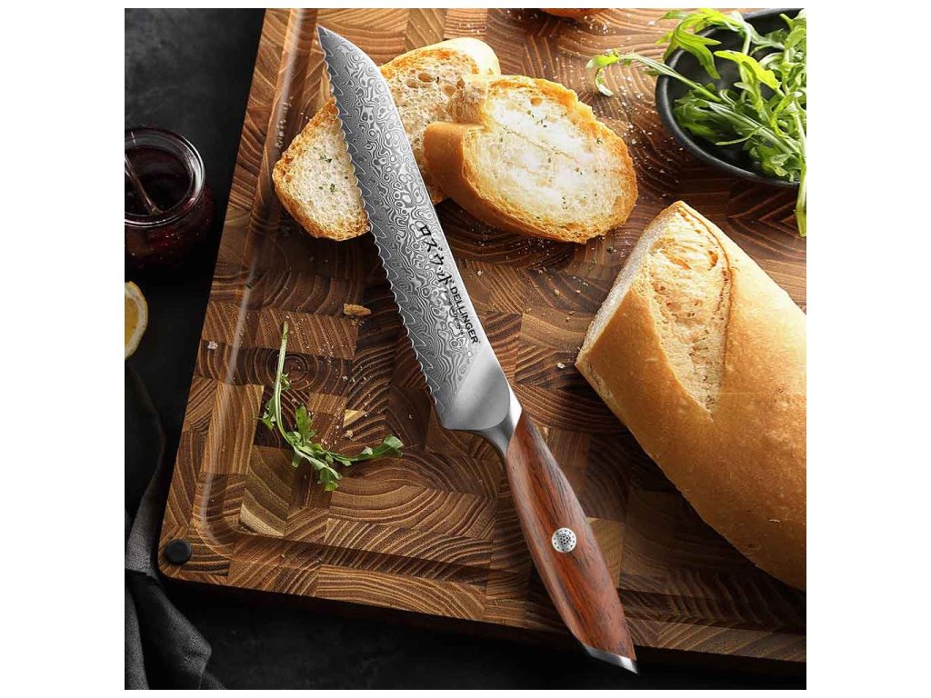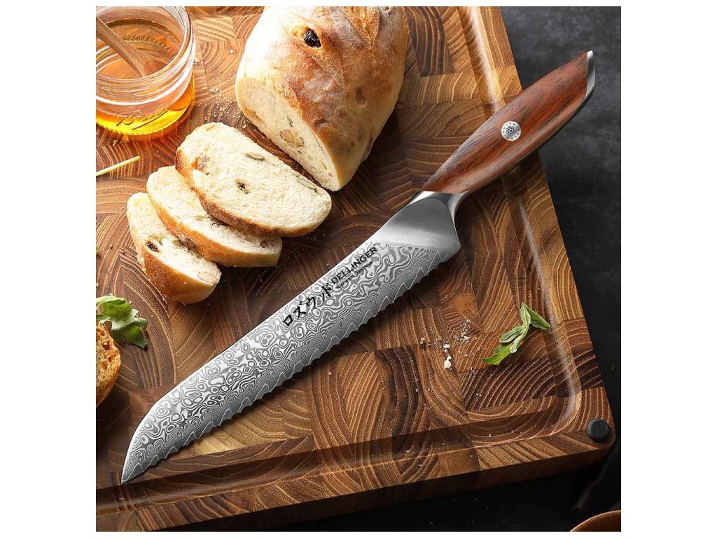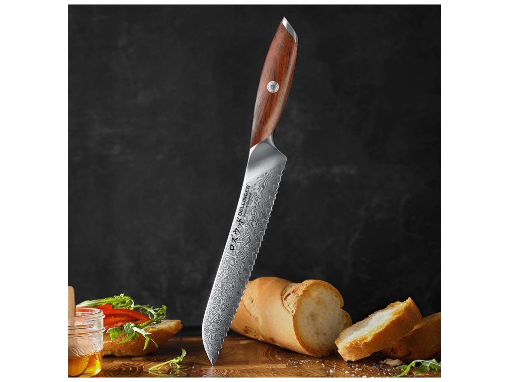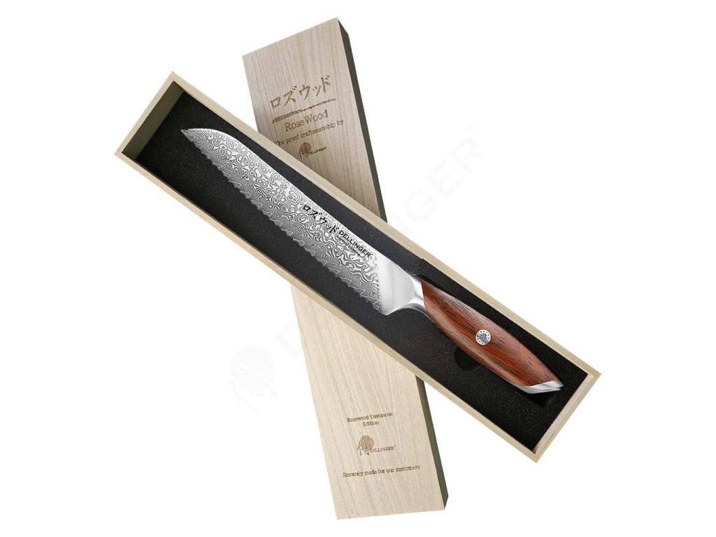 Dellinger Rosewood Bread Damascus – kenyérvágó kés 21 cm