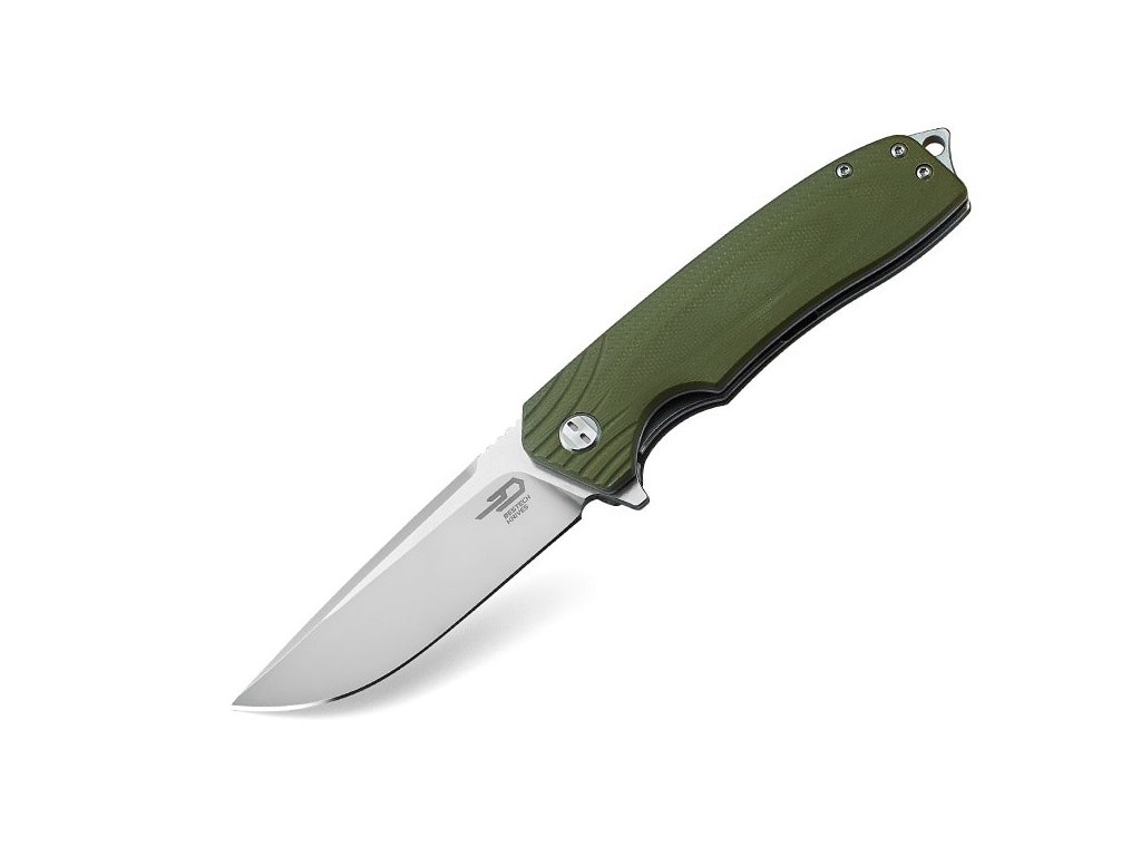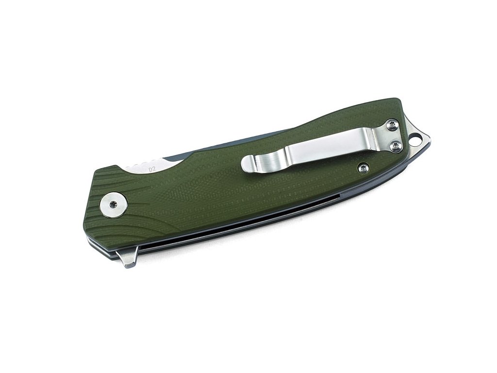 A Bestech Lion modern, közepes méretű összecsukható kés mindennapi használatra. A D2 szerszámacél penge egyenes leélezésű, és 8,9 cm hosszú. A penge kerámia csapágyakra van szerelve, amelynek köszönhetően a kés nyitása rendkívül egyszerű és folytonos. Sötétzöld G10 markolat. A késen liner lock biztosíték vanacél csíptetővel a felfüggesztéshez.