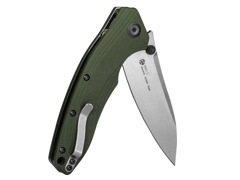 Összecsukható EDC kés, alkalmas mindennapi használatra. A kriogén kezeléssel ellátott 3 mm vastag Sandvik 14C28N rozsdamentes acél penge lapos élezésű és 9 cm hosszú. A matt felületű penge a csapágyakra van felszerelve, ami valóban megkönnyíti a kés kinyitását. A markolat G10-ből készült. A kést egy hüvelykujj retesz rögzíti Thumb Up rendszerrel. Flipper nyitás - csak meg kell nyitnia a kést egy ujjal vagy egy kétoldalas pin a penge.