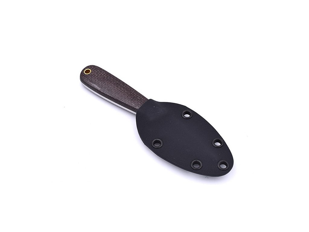 A Brisa Necker egy rögzített pengéjű kés, amelyet a nyakán viselnek. 7 cm hosszú penge, Sandvik 12C27 rozsdamentes acélból, skandináv élezésű. Micarta markolat, kydex tok.