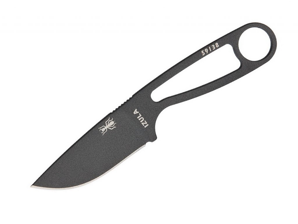 Az ESEE Izula egy kicsi és könnyű kés, amely alkalmas nyakba vagy rejtett hordozásra. A 6,68 cm-es 1095 szénacél penge szürke bevonattal és lapos élezéssel rendelkezik. Mivel szénacél, a penge hajlamos korrodálódni és elkapni a patinát, különösen a késen és azokon a helyeken, ahol a felületi bevonat idővel megtörik. Ezért ajánlatos az acélt olajjal kezelni. Fekete műanyag tok kapcsos akasztással. A késsel fekete micart markolatk is kaphatók.