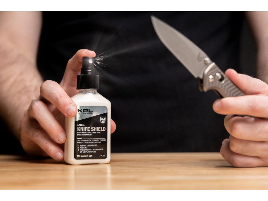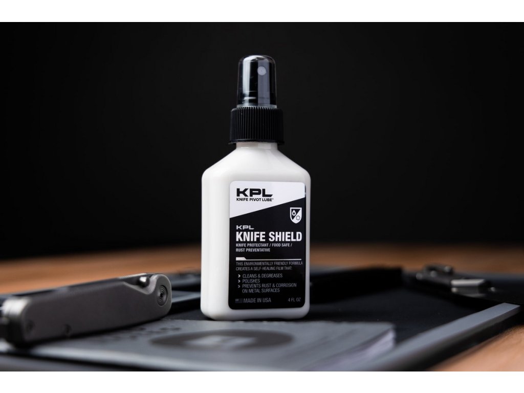 Vízbázisú és nem mérgező - a Knife Shield azonnal eltávolítja a ragasztómaradványokat és a ráragadt szennyeződéseket. Még jobban működik, mint a mérgező és gyúlékony oldószerek, mint az aceton és a benzin. A Knife Shield feloldja és zsírtalanítja az olajos felületeket, és fátyolmentes fényt hagy maga után. A fémek széles skáláján működik, védi az acélt, rezet, sárgaréz, bronz, nikkel, ezüst, titán, cirkónium, timaszkusz, mokume.