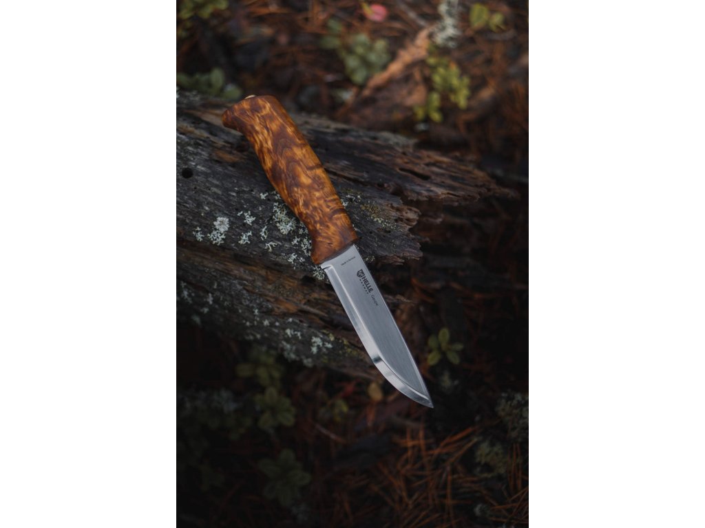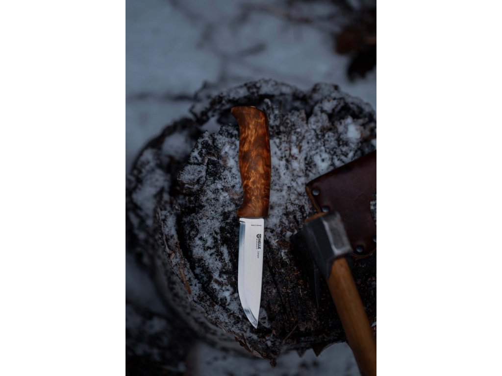 A Helle Gaupe egy közepes méretű kés a mindennapi feladatokhoz. A Gaupe klasszikus skandináv formájú, kis ujjvédővel és jól formázott markolatval a biztos fogás érdekében. Norvégul a gaupe hiúzt jelent, amelyre ez a kés némileg hasonlít szépségében és teljesítményében. 2,9 mm vastag penge Sandvik 12C27 rozsdamentes acélból. Formázott göndör nyírfa nyél. Valódi, kiváló minőségű bőrből készült tokkal, amely biztonságosan viselhető az övön.