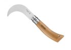 Természetjáró kés X50CrMoV15 rozsdamentes acélból. A penge hossza 18 cm, a teljes hossz 29,5 cm. Fa markolat. Barna bőr tok.