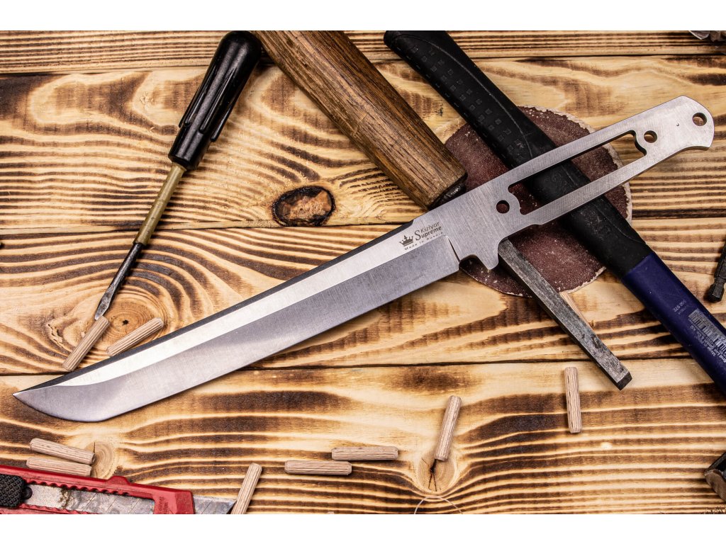 A Kizlyar Supreme Sensei késpenge. A penge vastagsága 4,8 mm konstrukciója full-tang típusú és az anyaga AUS-8 rozsdamentes acél. A kés hossza 35,5 cm, a penge hossza 22 cm. A penge nincs megélezve.
