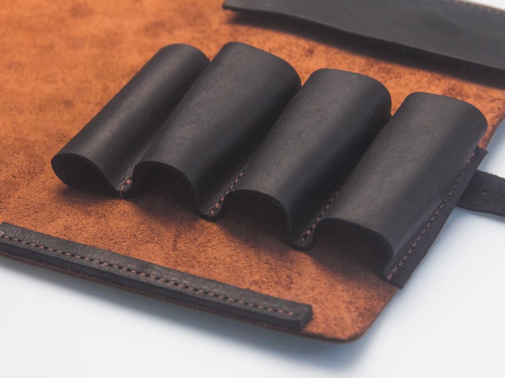 A szerszámok biztonságos tárolására szolgáló tok valódi bőrből készült és erős cérnával van varrva. A tok praktikus és 3 faragószerszámod elfér benne. Elfér hátizsákban és munkakötényben is. A tokot olyan eszközökhöz tervezték, mint a faragó kések, vésők és vésők.