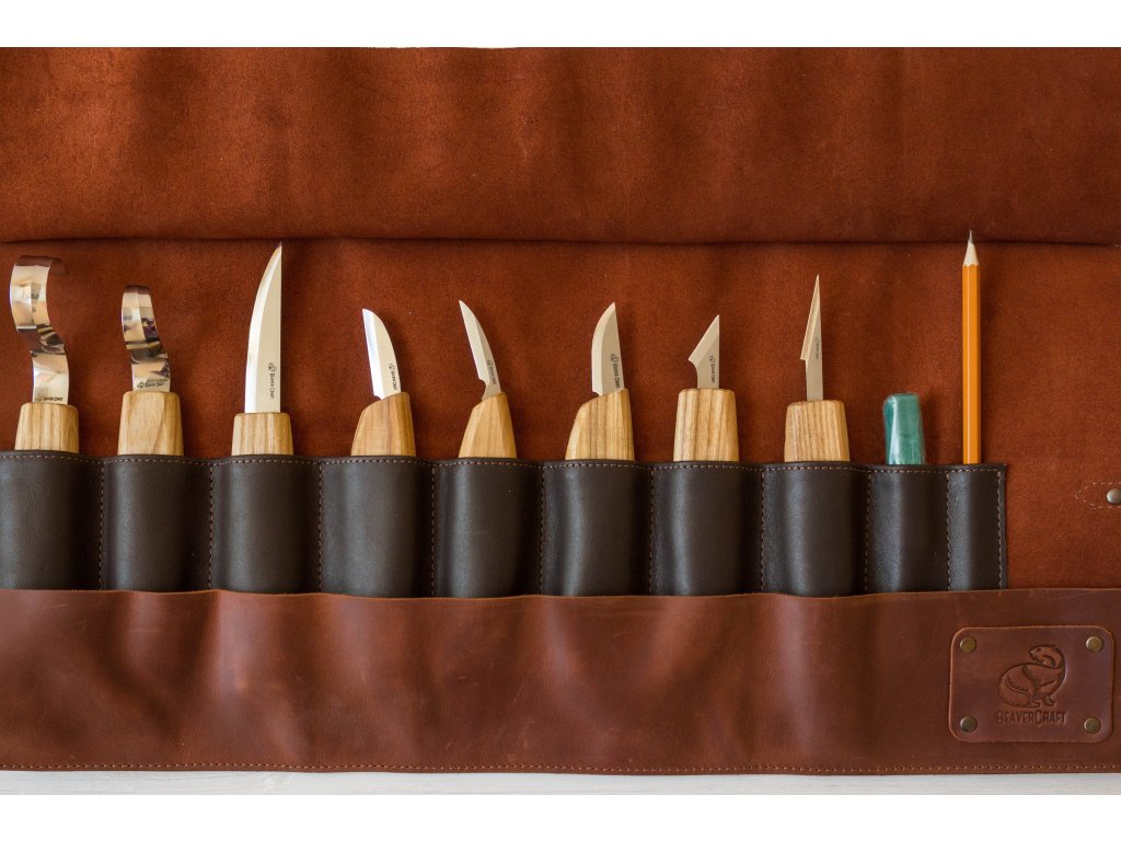 BeaverCraft TR8X tárolótáska faragó szerszámokhoz, bőr - 8 férőhelyes