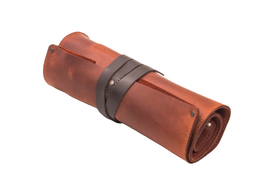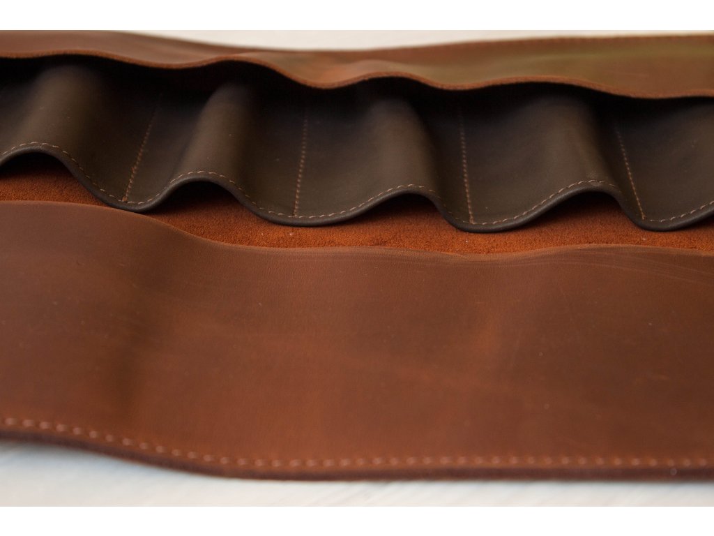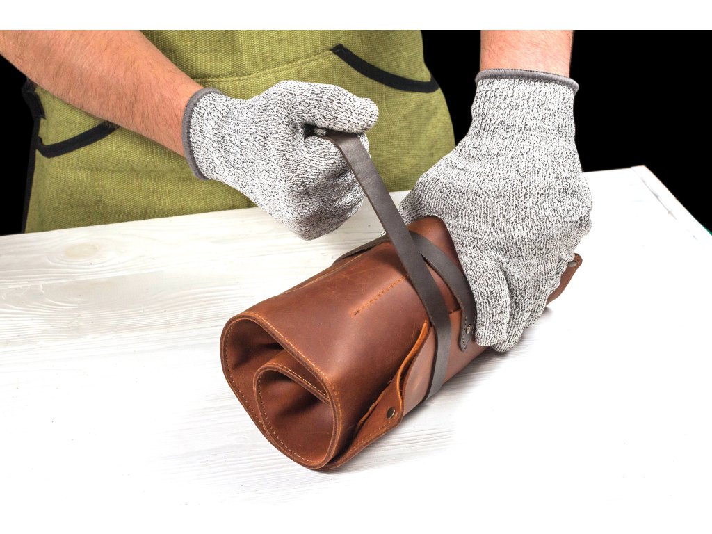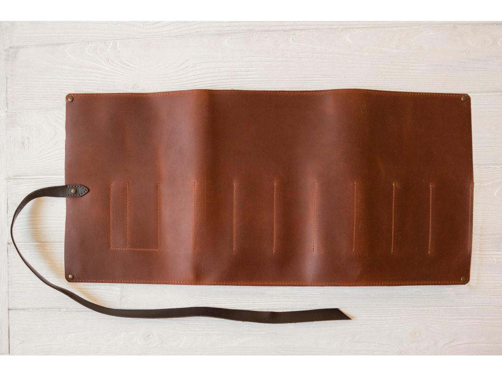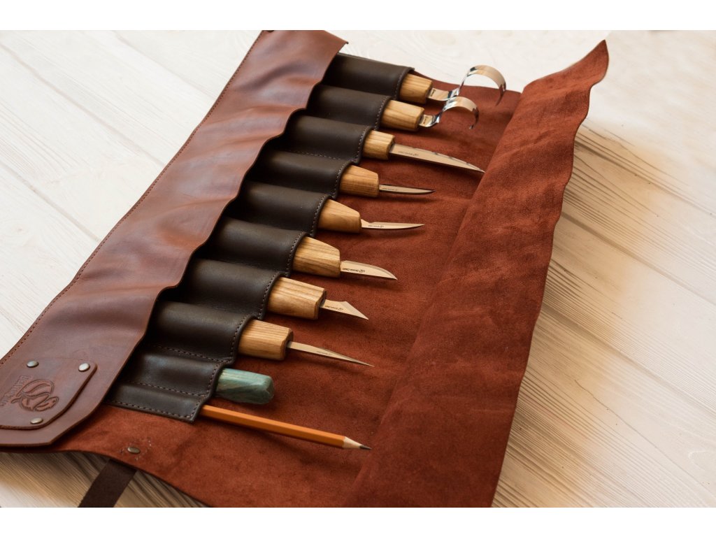 A szerszámok biztonságos tárolására szolgáló tok valódi bőrből készült és erős cérnával van varrva. A tok praktikus és 8 darab faragó szerszámot tud elhelyezni. További 2 tárolórésszel rendelkezik, amelyekbe például csiszolópasztát és ceruzát is elfér. Az 1. tárolózseb 5,5 cm, 2-8 5 cm, 9 4 cm és 10 2,5 cm. A tok hátizsákba vagy munkaköténybe helyezhető. Olyan szerszámok faragására tervezték, mint a kések, vésők és vésők.