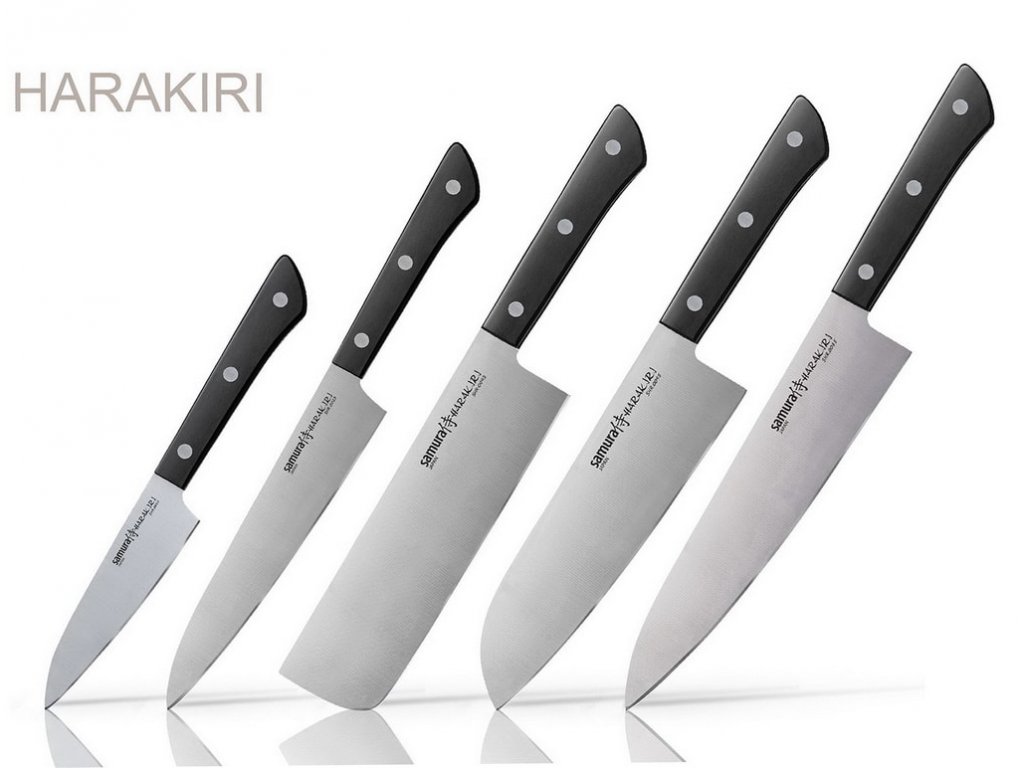 5 darabból álló Samura konyhai kés készlet a Harakiri modellszériából. A Samura Harakiri kések vékony japán acélpengék és praktikus ABS műanyag markolatok kombinációját kínálják. Könnyű és nagyon jó a minőség, a forma és az ár aránya.