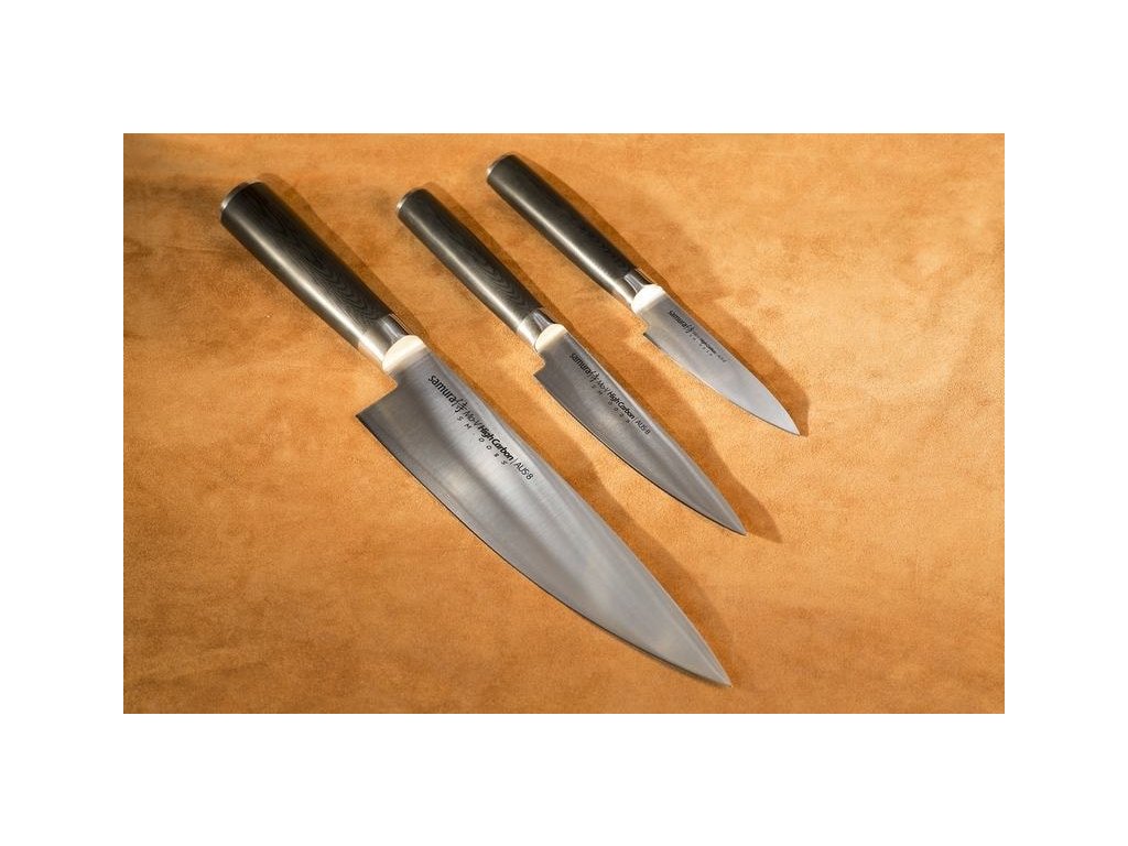Ez a professzionális Samura konyhai késkészlet három leggyakrabban használt konyhai kést tartalmazza. A MO-V kések a japán acél, a hosszú távú megbízhatóság és az időtlen formatervezés tökéletes kombinációját kínálják. Ugyanakkor ötvözik a japán és az európai konyhai kések legjobb tulajdonságait.