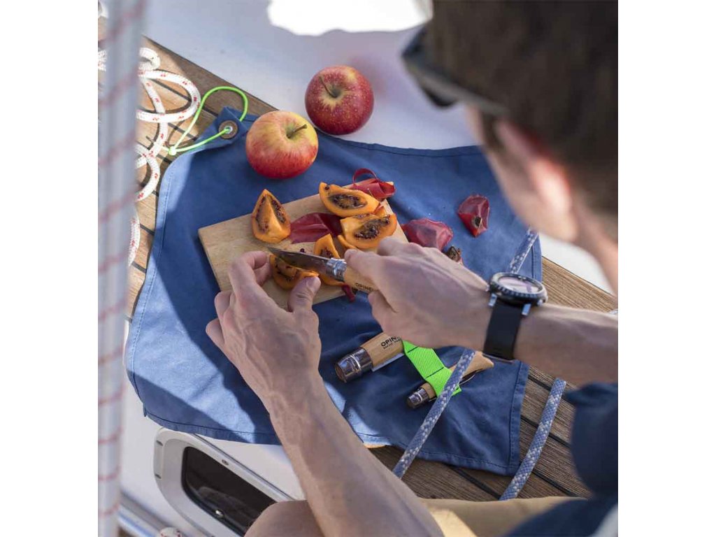 Fedezze fel a praktikus és hatékony szabadtéri főzőkészletet. Ideális minden körülmények között, mint például kempingezés, túrázás, bivak, hajó, nyaraló, utazás. A Nomad Cooking Kit 3 eszközt, egy 12x20 cm-es bükkfa vágódeszkát és egy könnyen mosható mikroszálas ruhadarabot tartalmaz, amelynek ebben a készletben utazócsomagként vagy szőnyegként van szerepe a hordozható, természetes konyha számára. A készletben található 3 eszköz a következő: egy kaparó, egy fogazott pengéjű záróható kés és egy sima pengéjű záróható kés, amelyhez egy dugóhúzó is tartozik a parafadugókhoz.