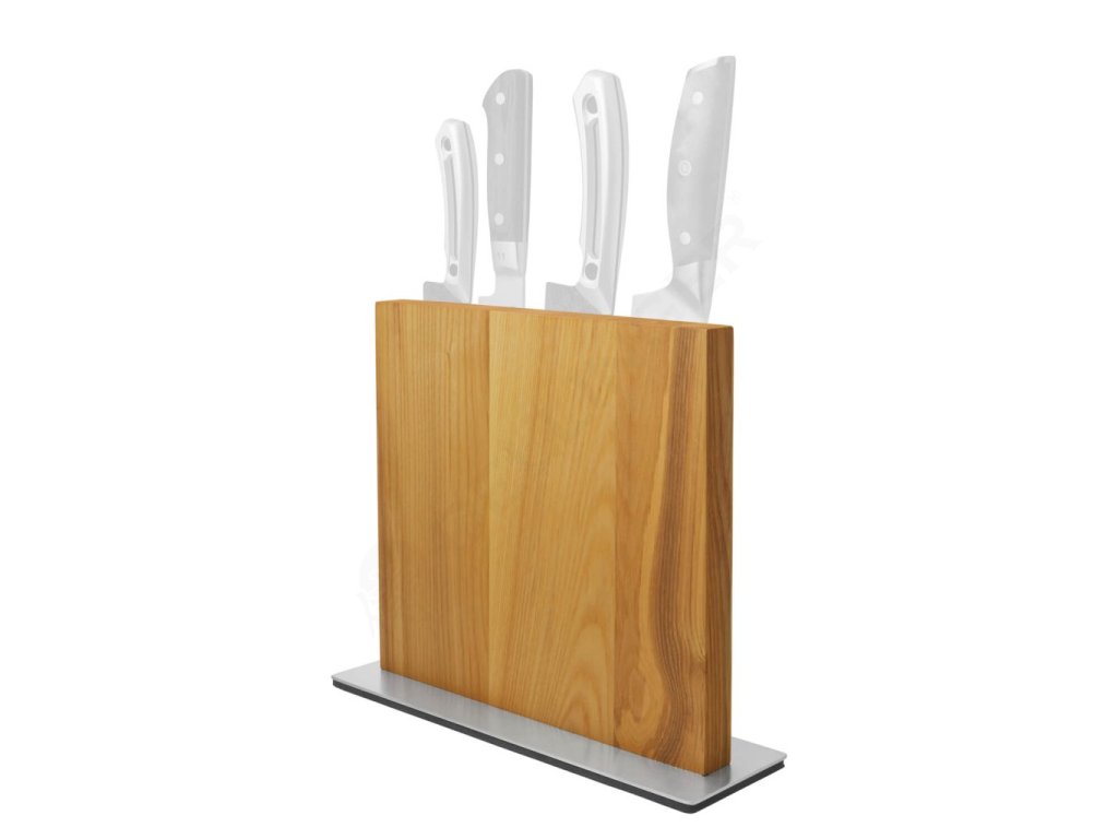 A Dellinger márkájú mágneses késállvány tökéletes választás a kések biztonságos és rendezett tárolásához. A tartó rendkívül praktikus, mivel mindkét oldalára helyezhetők kések, így akár 8 kés is elfér rajta. A késállvány készítéséhez kiváló minőségű kőrisfa lett felhasználva. Dizájnja igazán időtálló, amely minden konyhába új stílust és eleganciát visz. Az alapzat rozsdamentes acélból készült, amely segíti a késállvány jobb egyensúlyát és stabilitását.