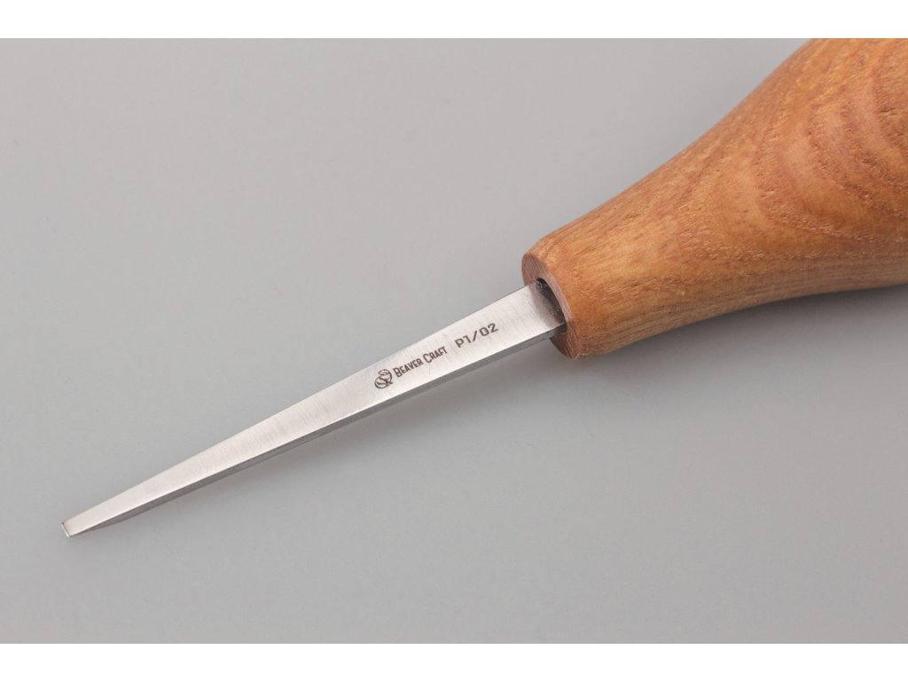 Az egyenes lapos P1 vésők egyszerű bevágásokban, domborművekben és faragási kontúrokban használhatók. Ezek megfelelő befejező eszközök. A P1 vésők körte alakú nyéllel rendelkeznek, ami jelentősen nagyobb irányítást biztosít a faragáshoz és lehetővé teszi a nehezen elérhető faterületek könnyebb faragását. A BeaverCraft szerszámai borotvaélesek és a dobozból azonnal készen állnak a faragási munkákra. A penge 1066 (65G) típusú szénacélból készül, 57-59 HRC keménységig edzett és puha és kemény fával való megmunkáláshoz is alkalmas. Kézzel élezett és polírozott, szélessége 2 mm. Nem szabad megfeledkeznünk hangsúlyozni a pengeél egyoldali lejtését, ami egy ferde elnevezés alatt is ismert. A markolat olajjal impregnált kőrisfából készült.