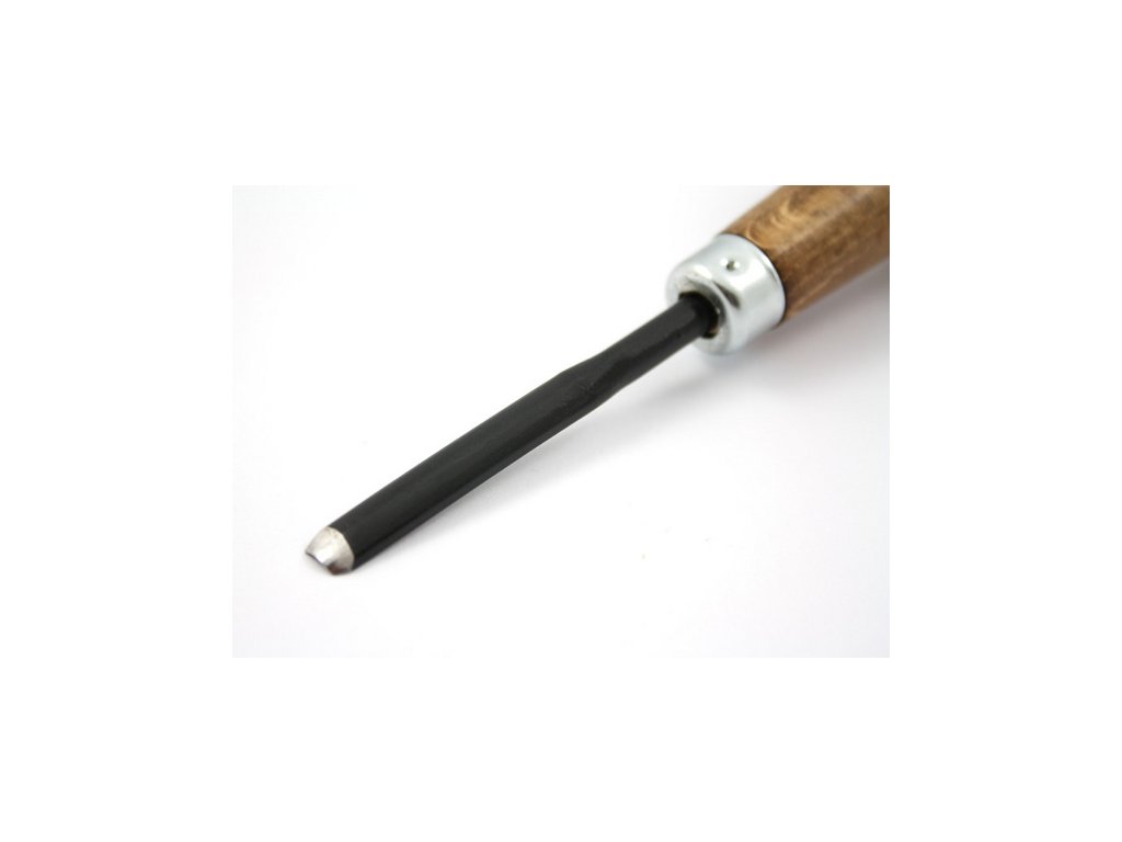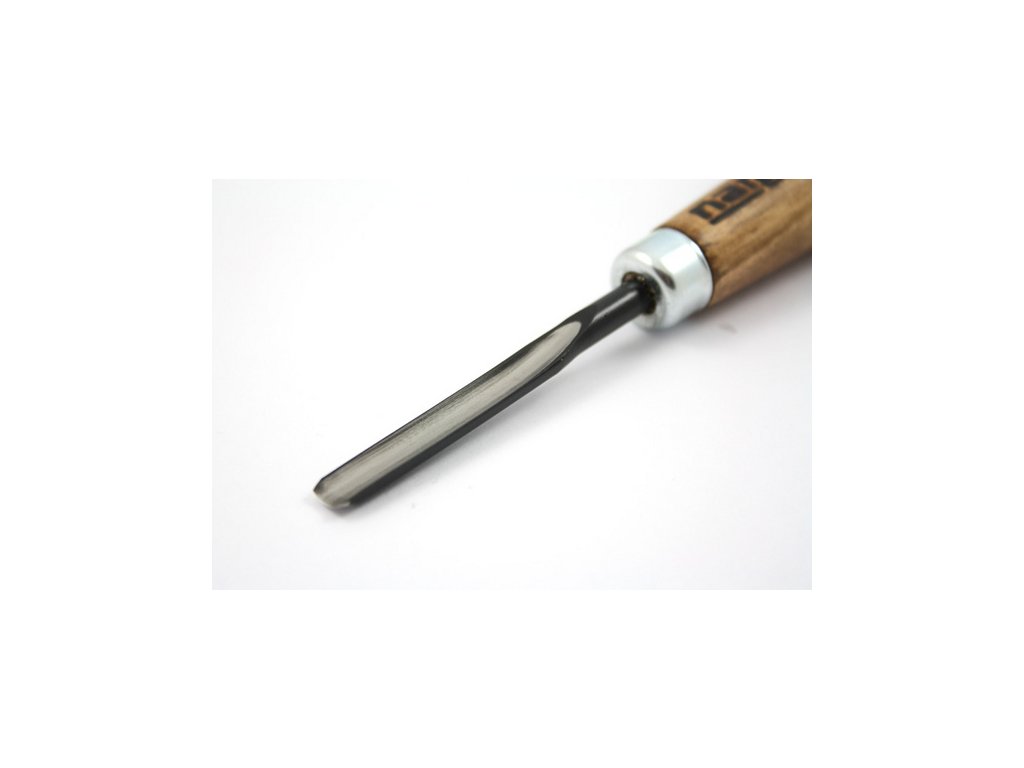 Egyenes – holkeres vésők finom, de szilárd, mély vágások faragására alkalmasak. Ennek az ásónak a pengéje 7 cm a Narex 8-as pengeprofillal, a vágóél szélessége 6 mm, a markolat mérete 8,2 x 4 cm.