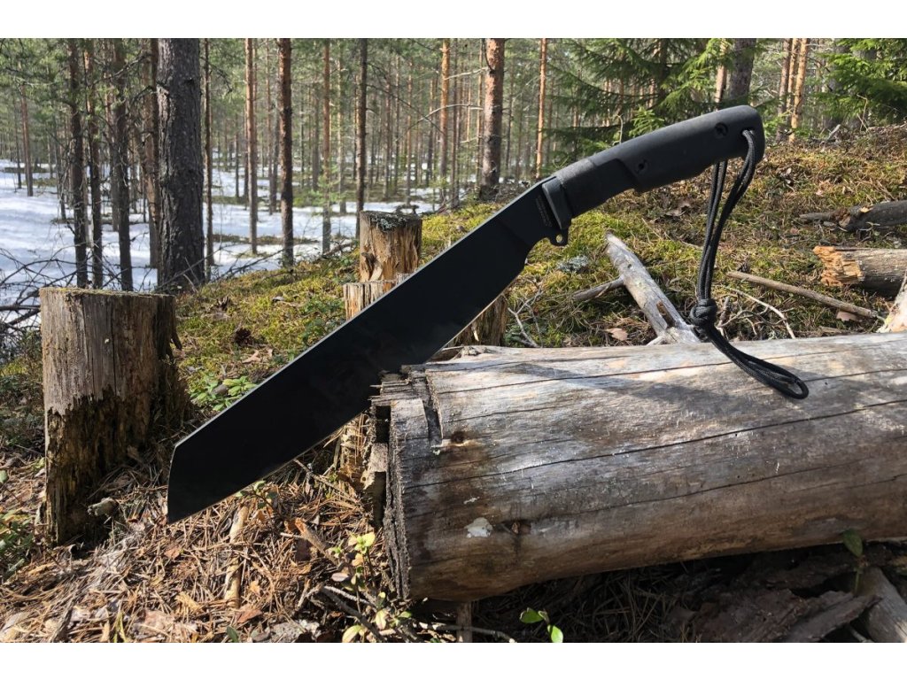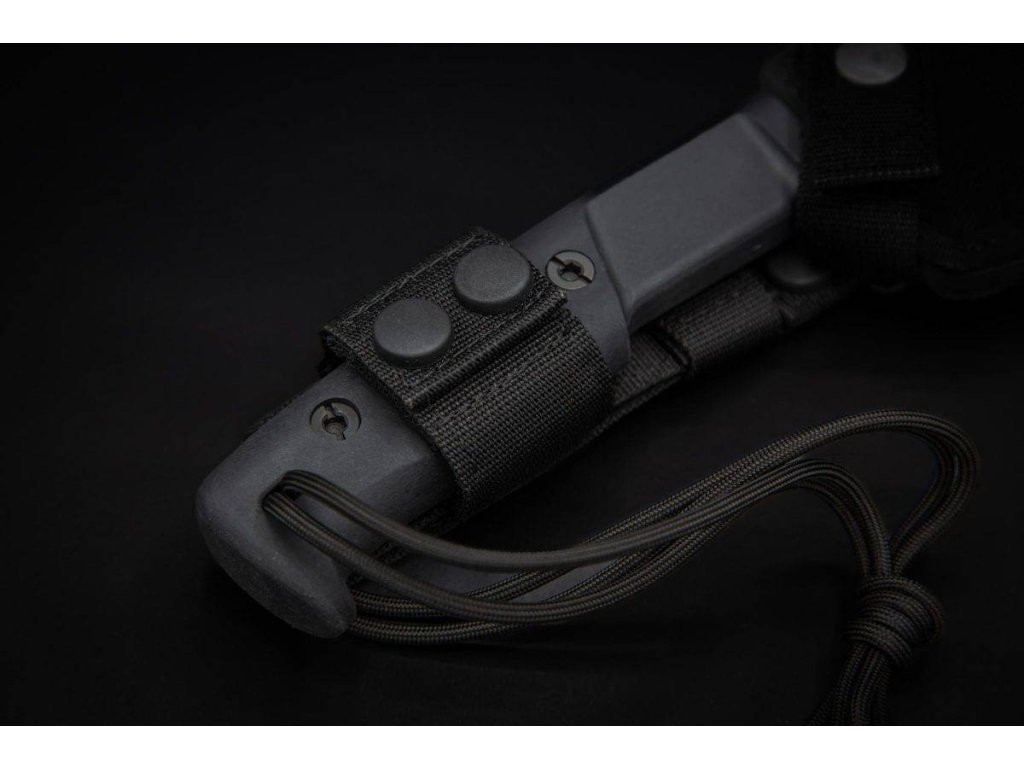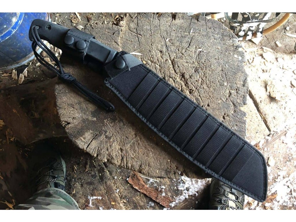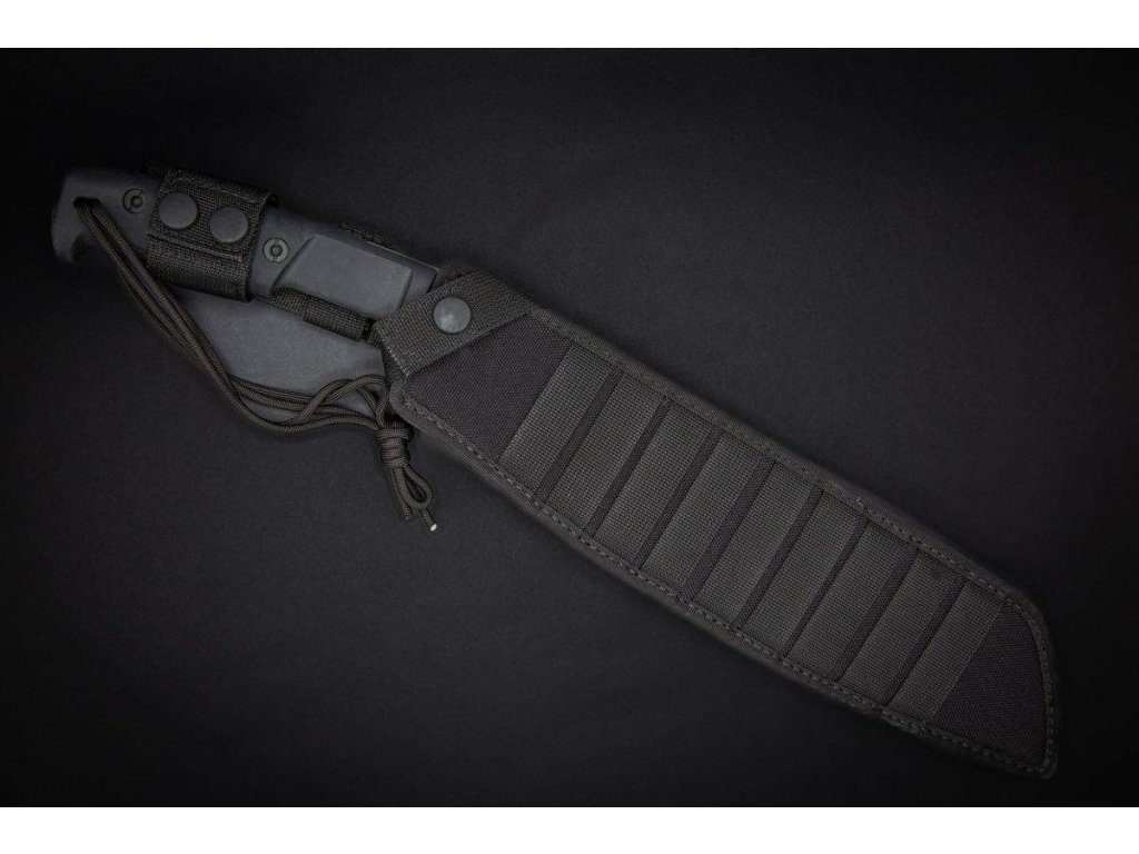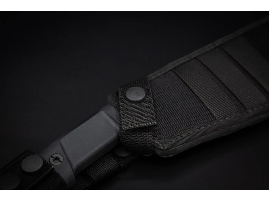 A mačéta speciális tokot kapott MOLLE rendszerrel és biztonsági vállpánttal.