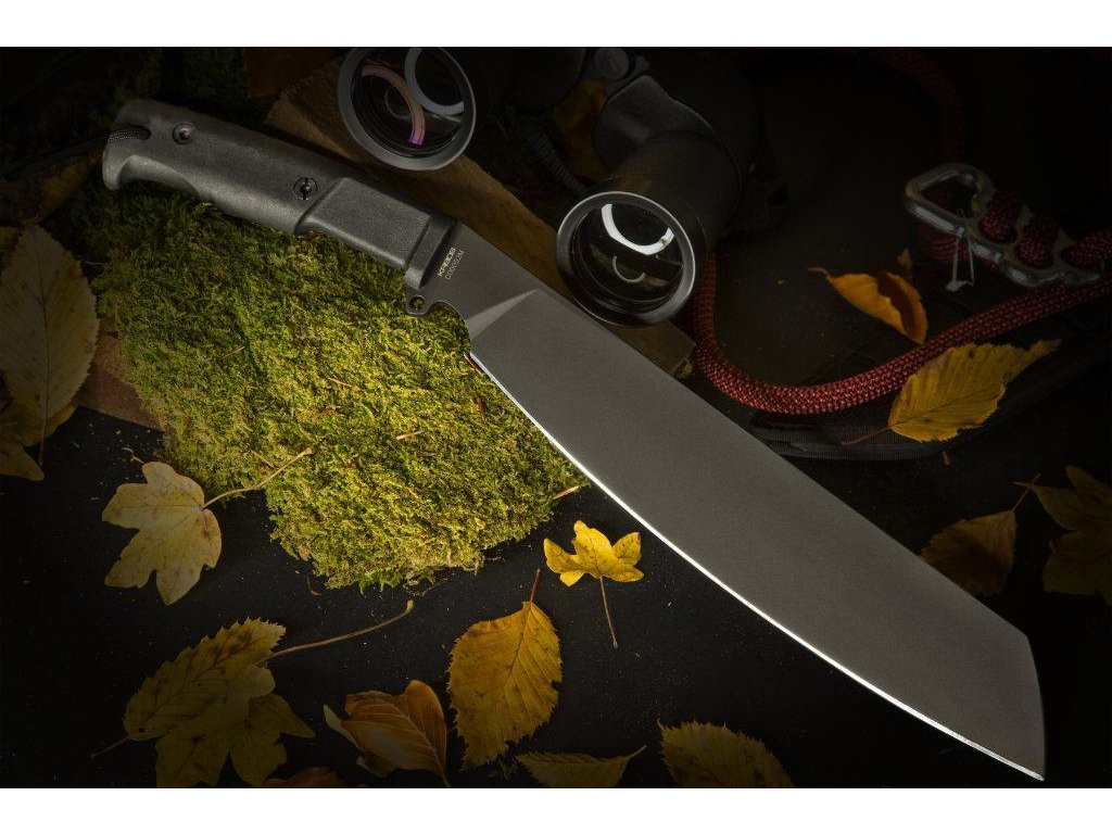 Hasonló eszközöket általában puhább acélból készítenek, hogy megőrizzék a rugalmasságot és könnyebb legyen az élezés. Ebben az esetben a Böhler N690 ideális választás, mivel megfelelő rugalmasságot és figyelemre méltóan tartós élességet kínál. A penge kémiai réteggel van bevonva MIL-C-13924 (fekete oxid), a keménysége pedig körülbelül 58 HRC. A penge lapos élkiképzéssel rendelkezik, 11°-os szöggel kombinálva.