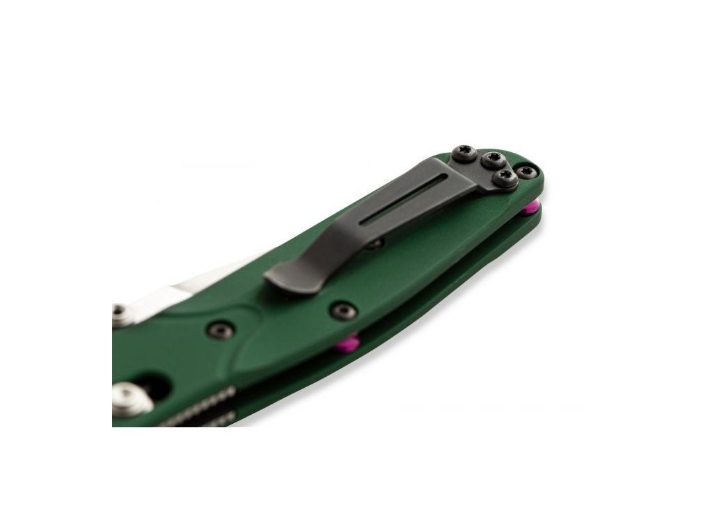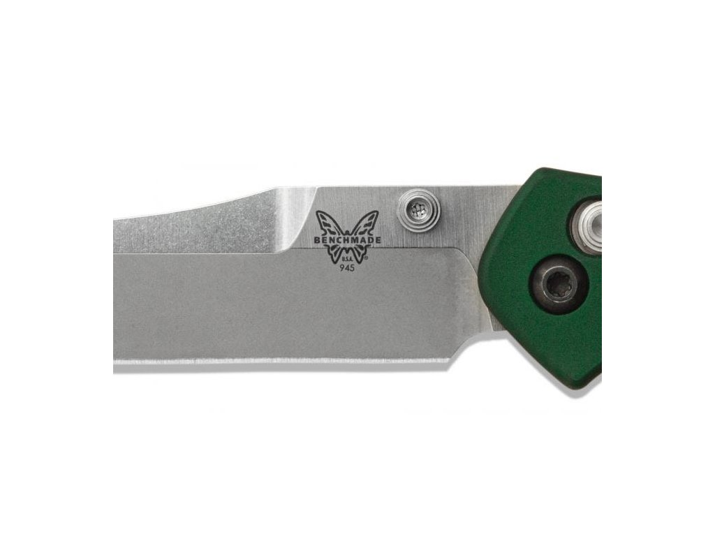 A Benchmade Mini Osborne 945 kés a legendás 940-es modell kisebb változata, amelyet régóta az egyik legjobb EDC késnek tartanak. minden idők. A jellemző tulajdonságok között a modellben benne van a karcsúság, a stílusosság és a minden helyzetben való működés képessége. A 945 Mini Osborne kés 7,42 cm hosszú pengéje prémium CPM-S30V (keménység 58-60 HRC) rozsdamentes acélból készült, matt/satin felülettel, lapos vágással és fordított tanto forma.Alumíniumból készült markolat, szemet gyönyörködtető zöld színben. A késnek van egyakasztó klipszje (tipp-up), amely mindkét oldalán megfordítható. A kés tehát jobb- és balkezesek számára is megfelelő eszköz. Axis Lock típusú biztosíték. Egykezes nyitás tűvel a pengén. A kést teljes egészében az Egyesült Államokban gyártották.