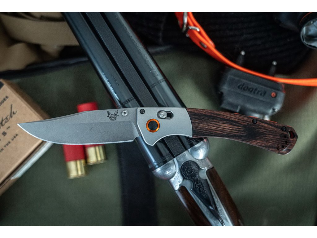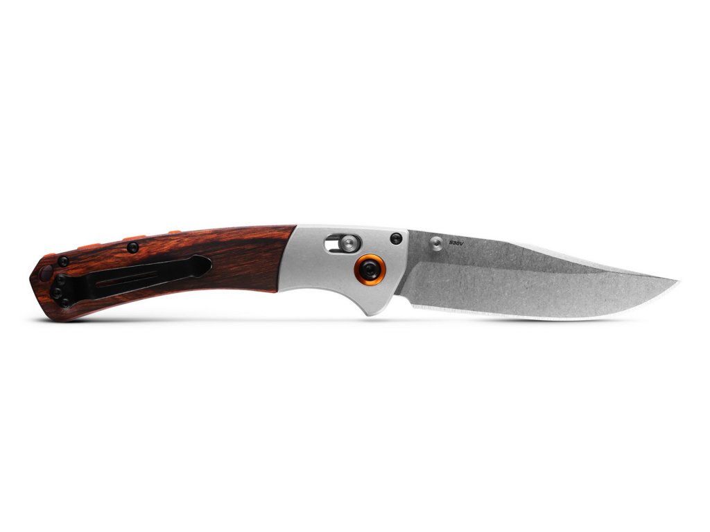 A stabilizált fa markolatú pengék alumínium boleróval és merész narancssárga színű kiegészítőkkel kombinálva, amelyeknek köszönhetően a kés gyenge fényviszonyok között is könnyen megtalálható. Fekete acélcsipesz a kés felakasztásához. A Crooked River teljesen új szintre emeli az elavult elképzeléseket arról, hogy milyennek kell lennie egy vadászkésnek. A kés az USA-ban készült.